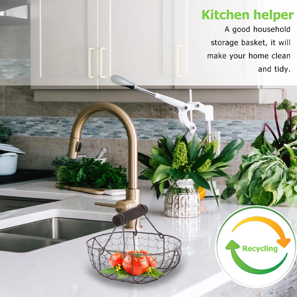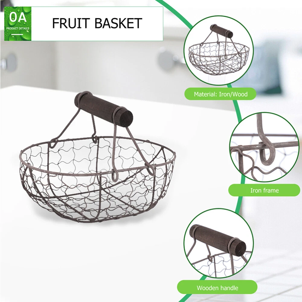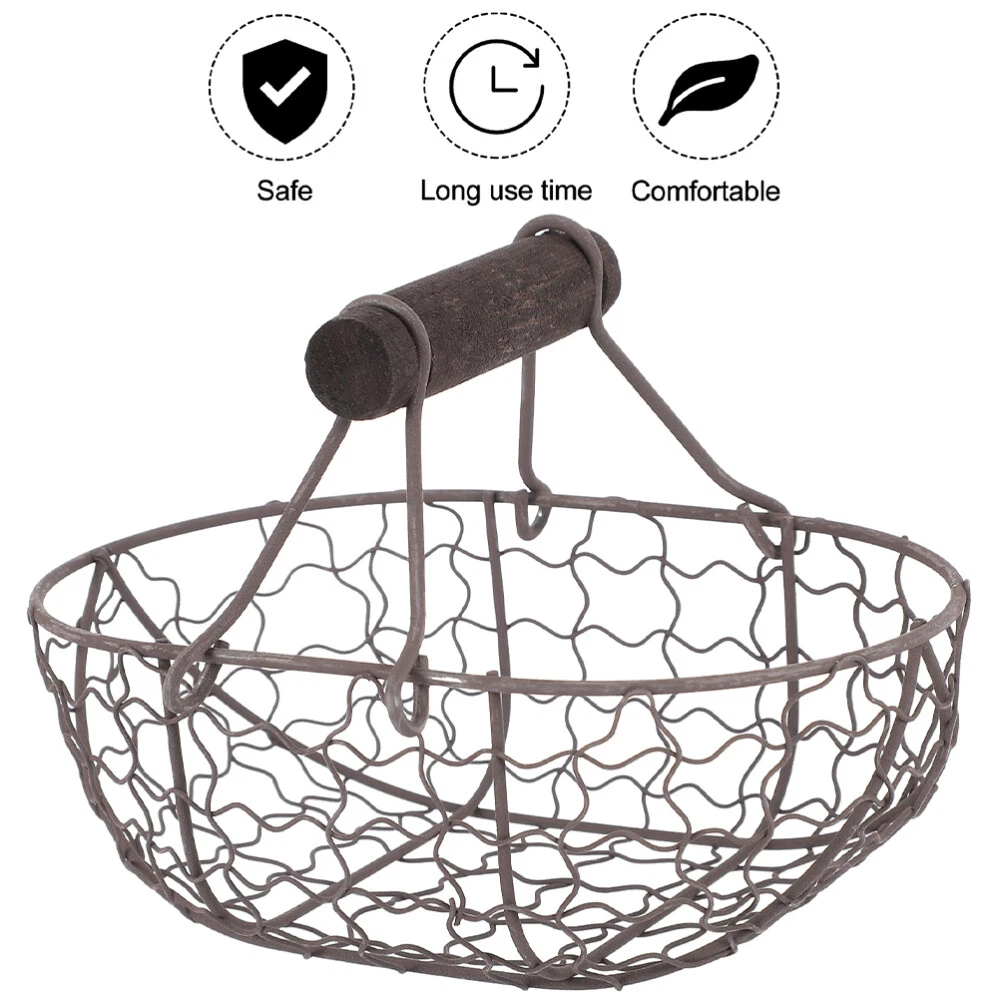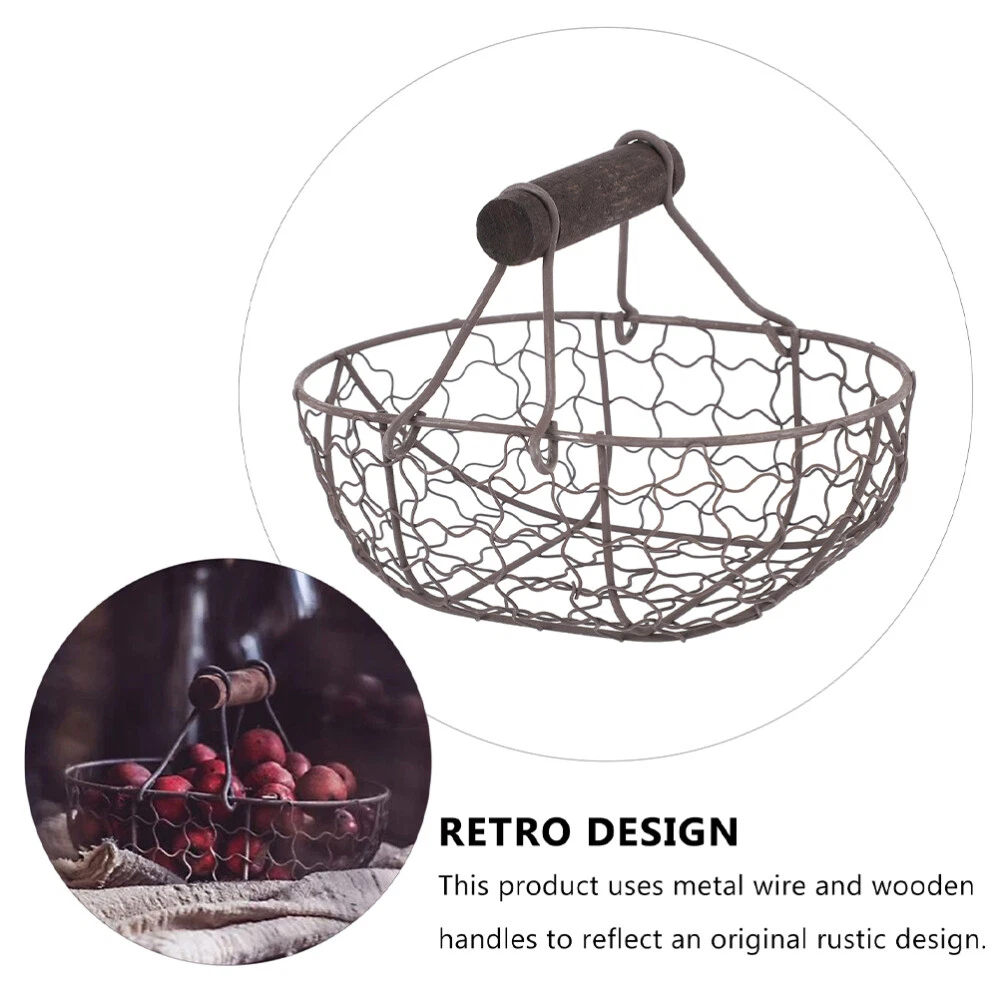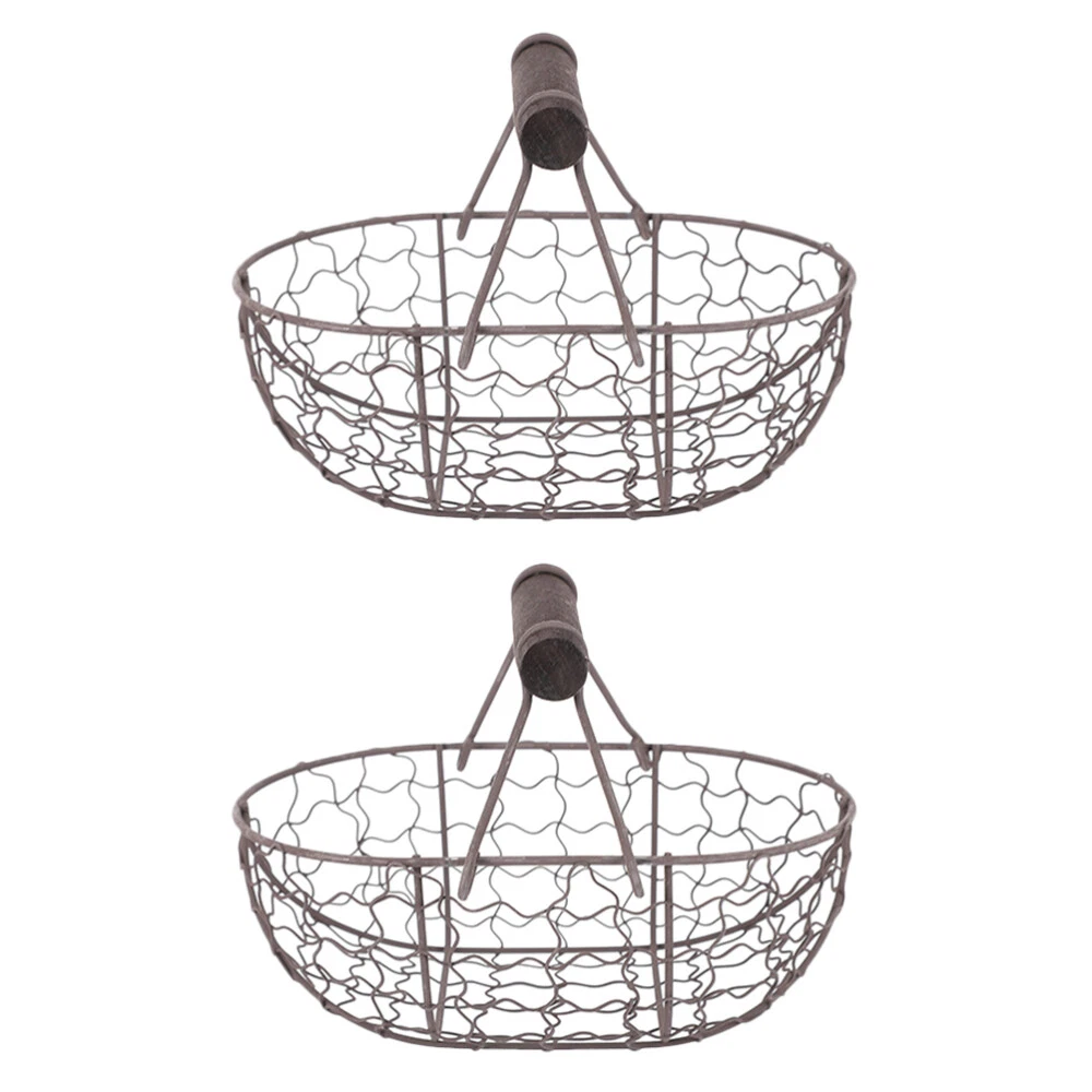 2 Pcs Wire Garden Basket Egg for Gathering Fresh Eggs Wrought Iron Storage