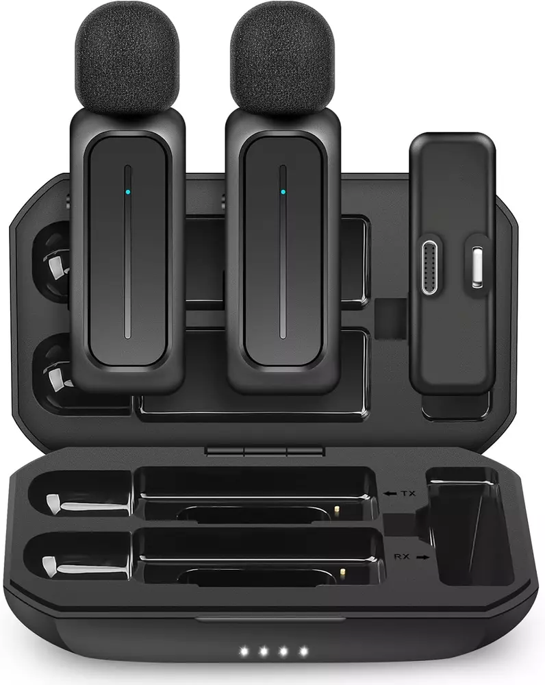 2 Pcs Wireless Lavalier Microphone for Iphone Ipad Android with Charging Case 7H