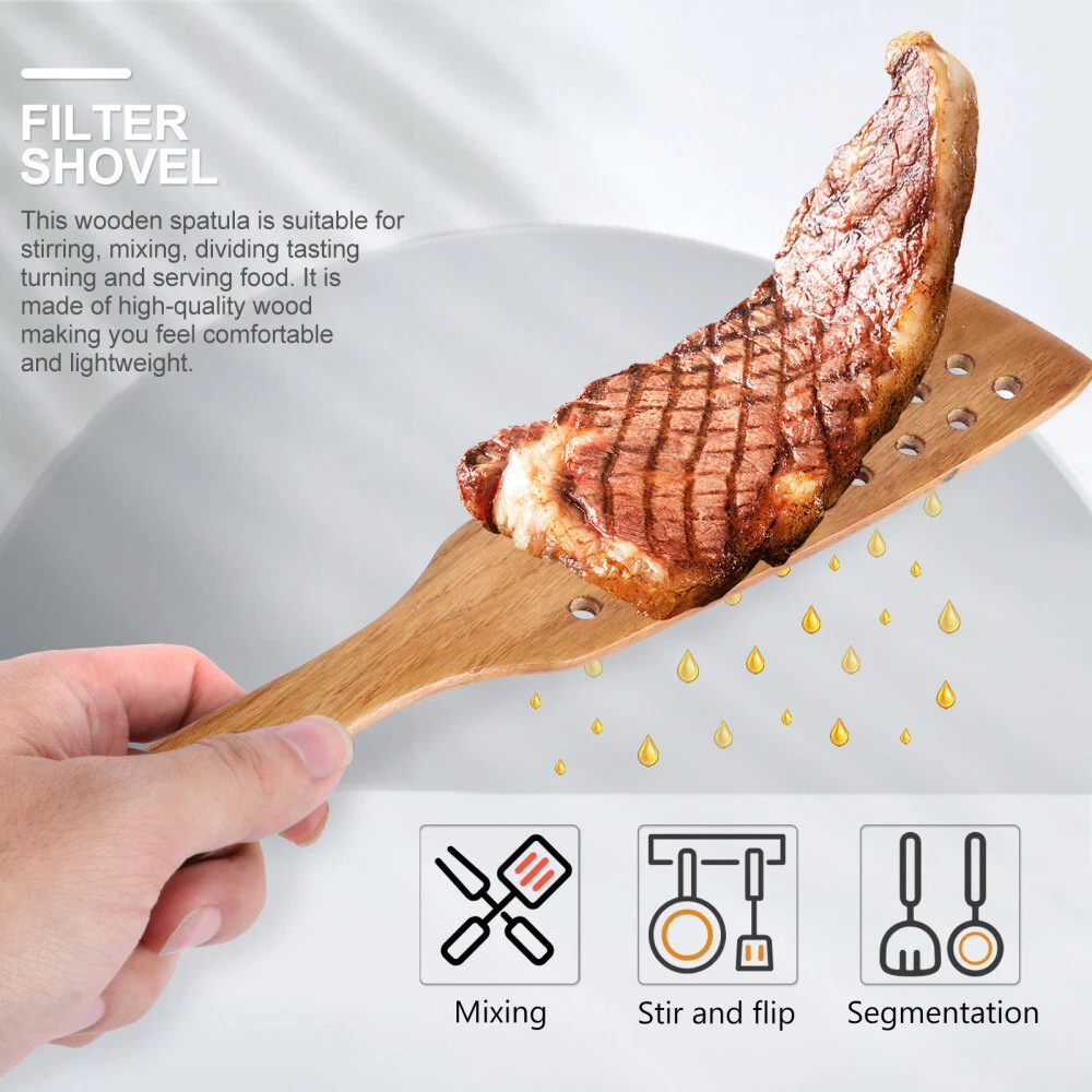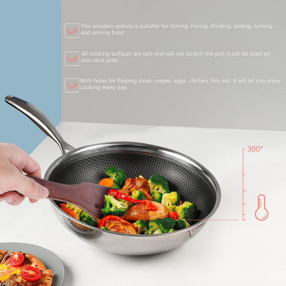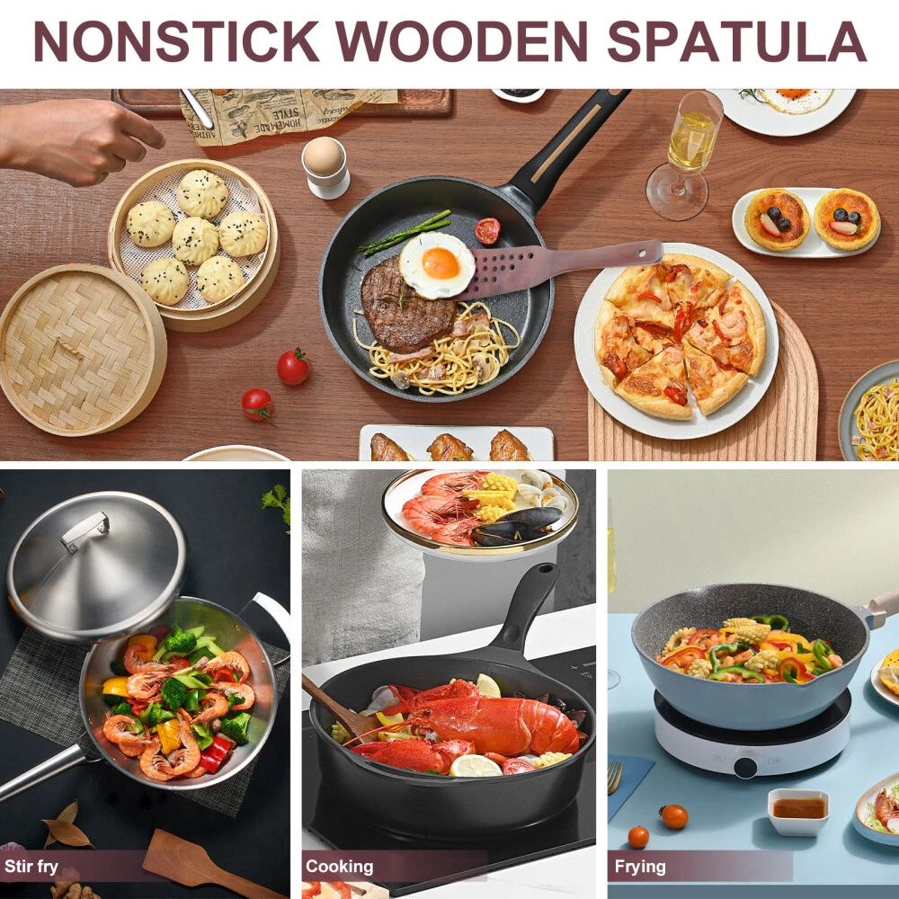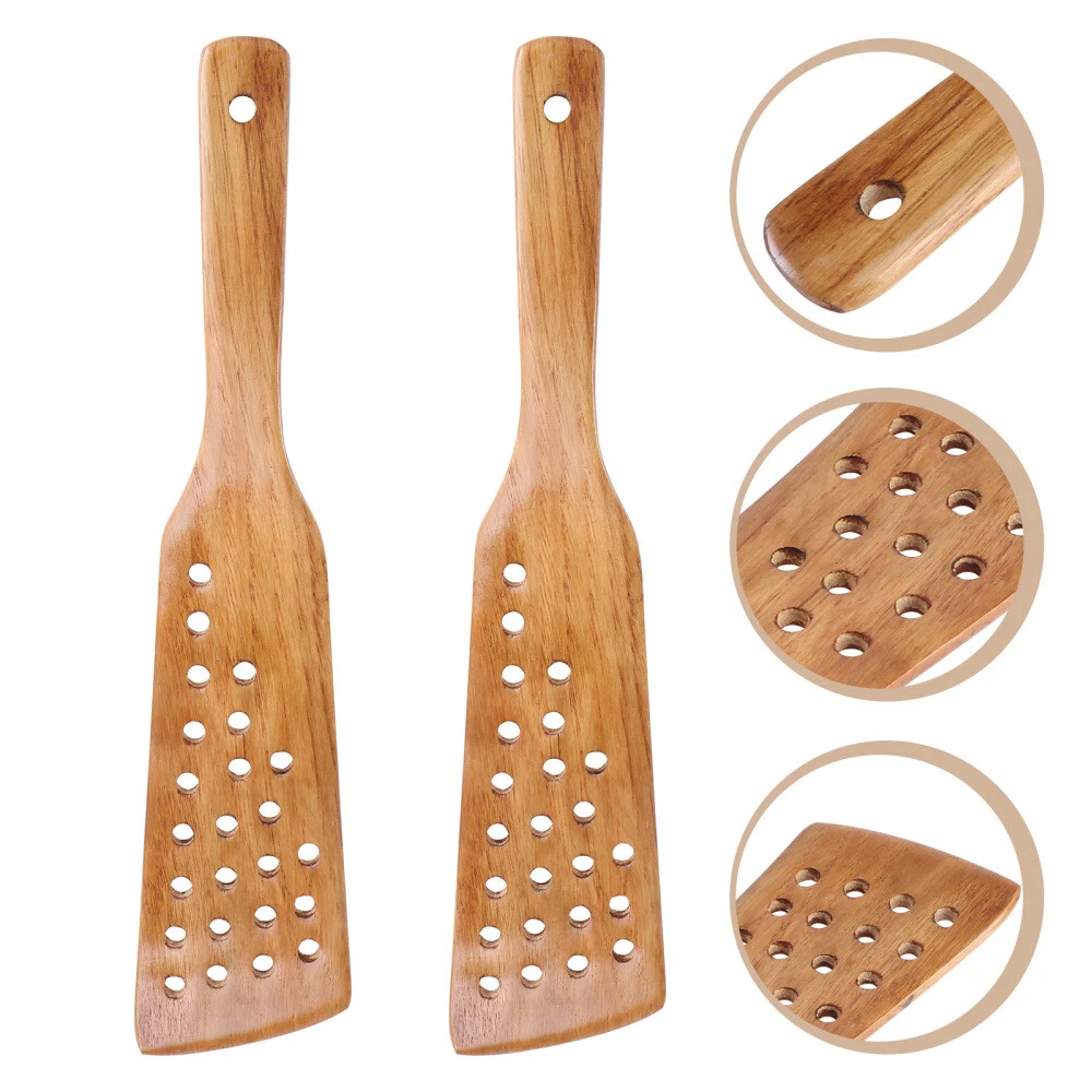 2 Pcs Wood Turner Spatula Wood Kitchen Utensil Nonstick Spatula