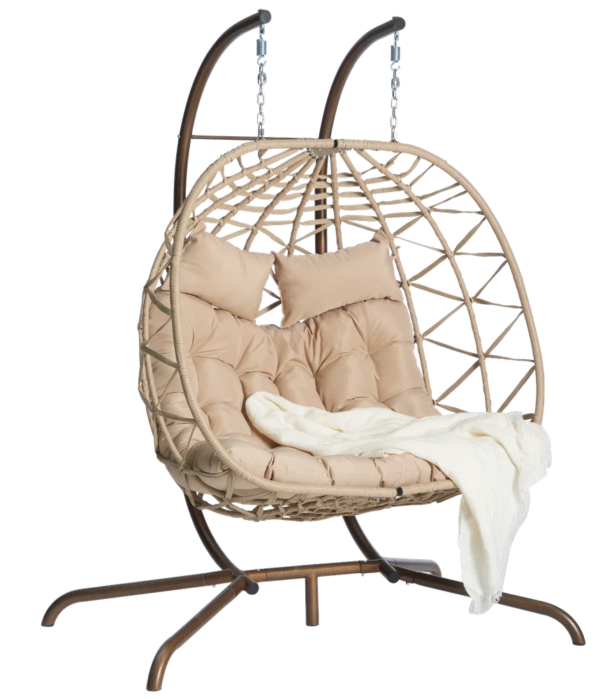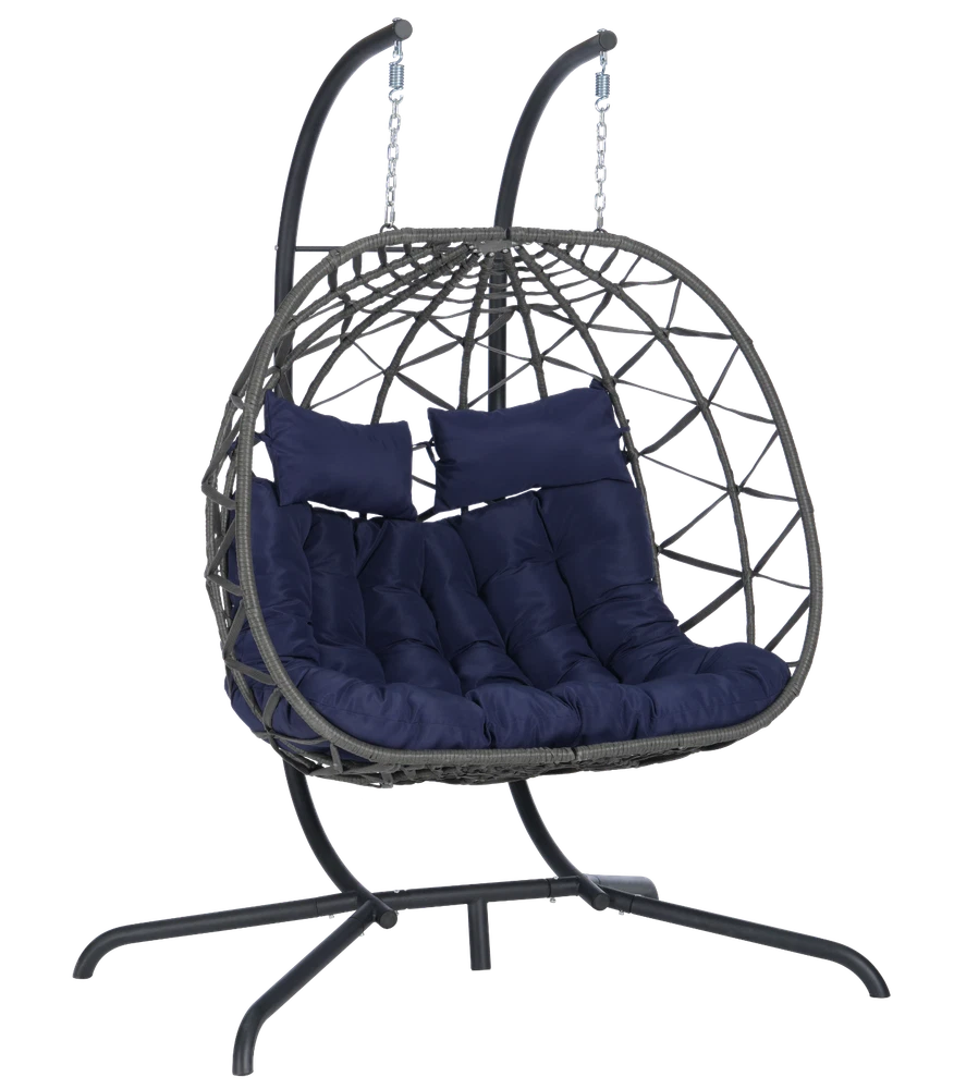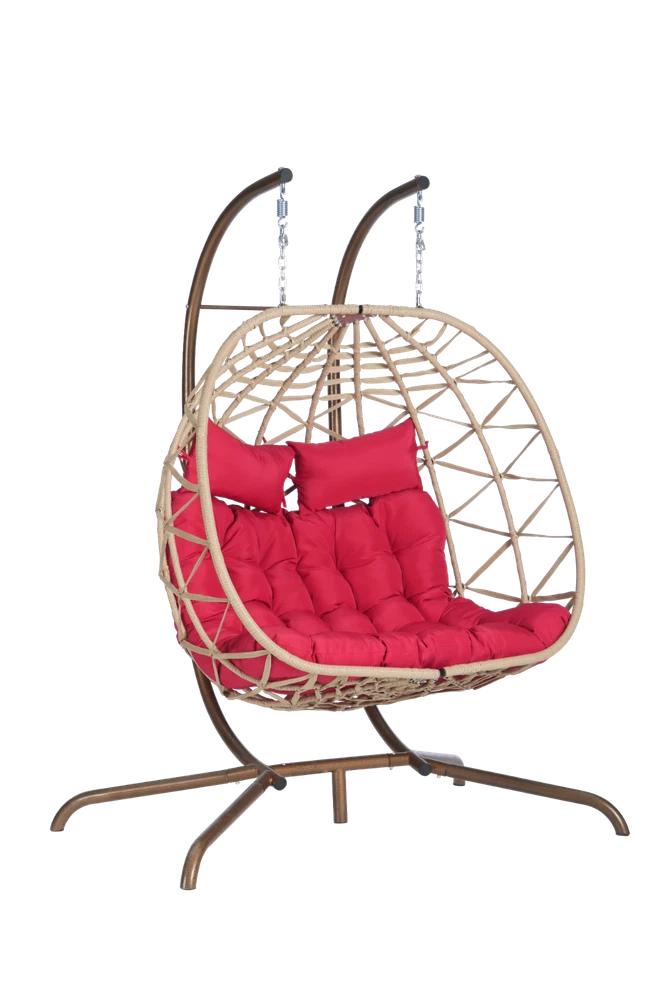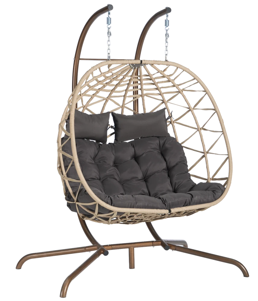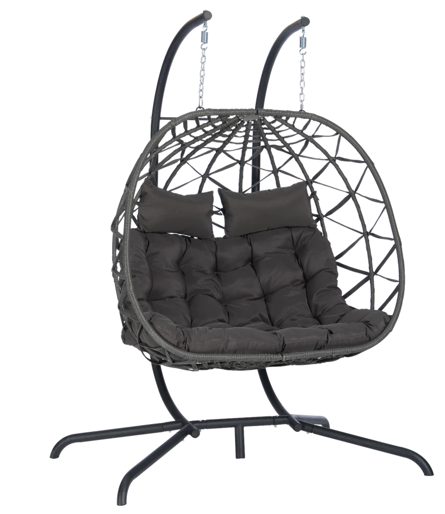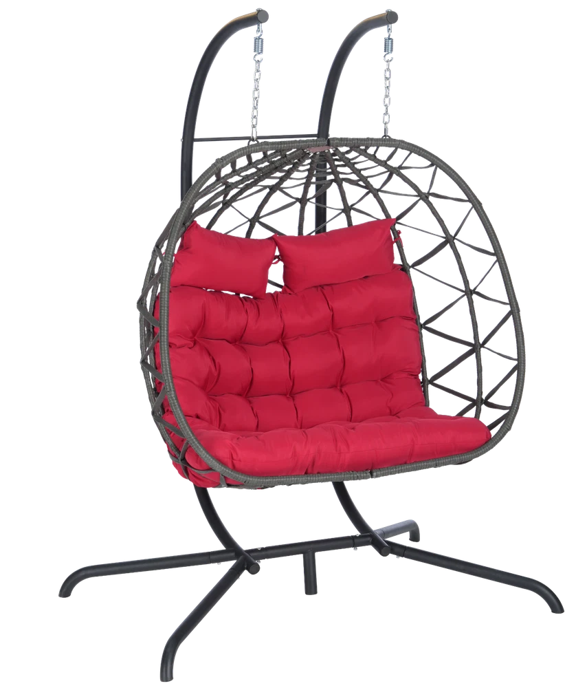 Description: This egg swing chair that fits 2 people comfortably was built to last in the outdoors with its strong durable iron frame it will be perfect for all weathers. Sit in luxurious comfort while surrounded by the peace and beauty of your backyard, or enjoy a good book indoors with this comfortable hanging chair. The seat cushions are made of premium polyester fabric and filled with cotton, it is soft and comfortable. The chair is crafted from wicker rattan, it is UV-Resistant, rust resistance and weather-resistant. Metal stand ensure the stability and safety for you and your family. Features: 1.High-quality durable iron frame, UV-Resistant, & rust resistance great for outdoor use 2.Hand-woven and handcrafted Wicker material by outstanding craftsmen 3.Cushion made from outdoor fabric and filled with soft Cotton, breathable design 4.Supported by a stand constructed from strong and durable iron 5.Fits 2 people and enough space for any position that you like 6.Iron Spreader Bar Included 7.Simple Assembly Required Specifications: Product Type: Egg Chair Style: Modern Seating Capacity: 2 Chair Frame Color: Dark Gray, Light Yellow Cushion Color: Dark Gray, Blue, Light Gray, Red, Khahi Frame Material: Iron Chair Material: Rattan With Stand: Yes Cushions Included:Yes Cushion Material: Polyester Fabric Seat Fill Material: Cotton Assembly Required: Yes Additional Tools Required: All Tools Included Est. Assembly Time: 30 Mins Weight Capacity: 600 lbs Dimension: 58.66"L x 38.18"W x 75.19"H Weight: 78 lb Number of Packages: 1 Package Included: 1x Egg Chair 2x Cushions 1x Stand 1x Hardware Bag 1x Instruction