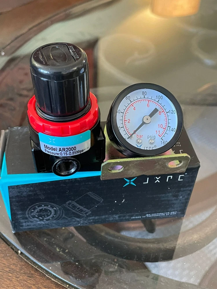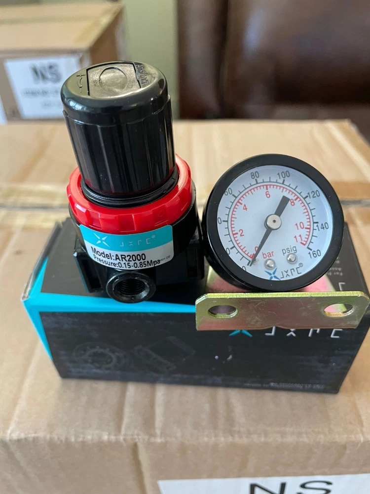 New Compressed Air Regulator with 1/4" working ports. Comes with Gauge, Mounting Bracket and Nut This high quality, economical air regulator is ideal for any application where you want to regulate the air pressure between 20 and 100 PSIG Quantity : 2 Pieces (2 Regul ators + 2 Gauges)