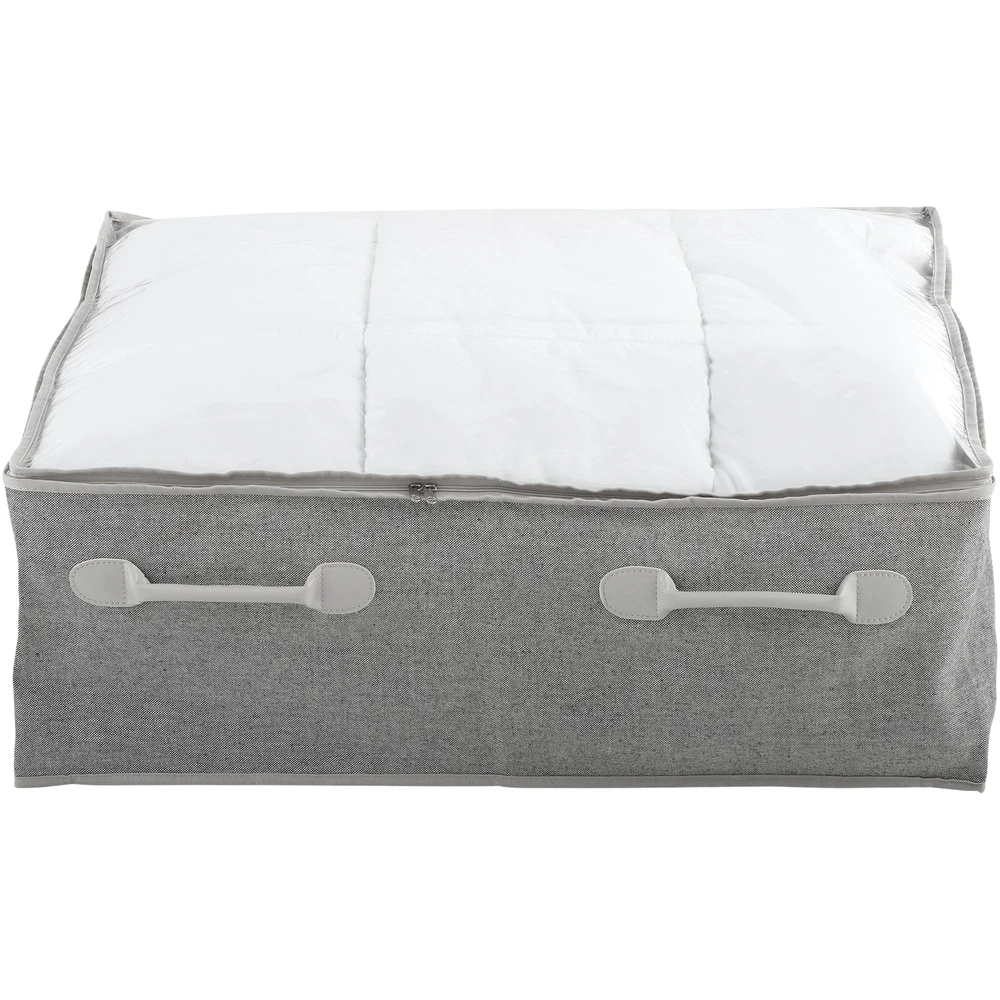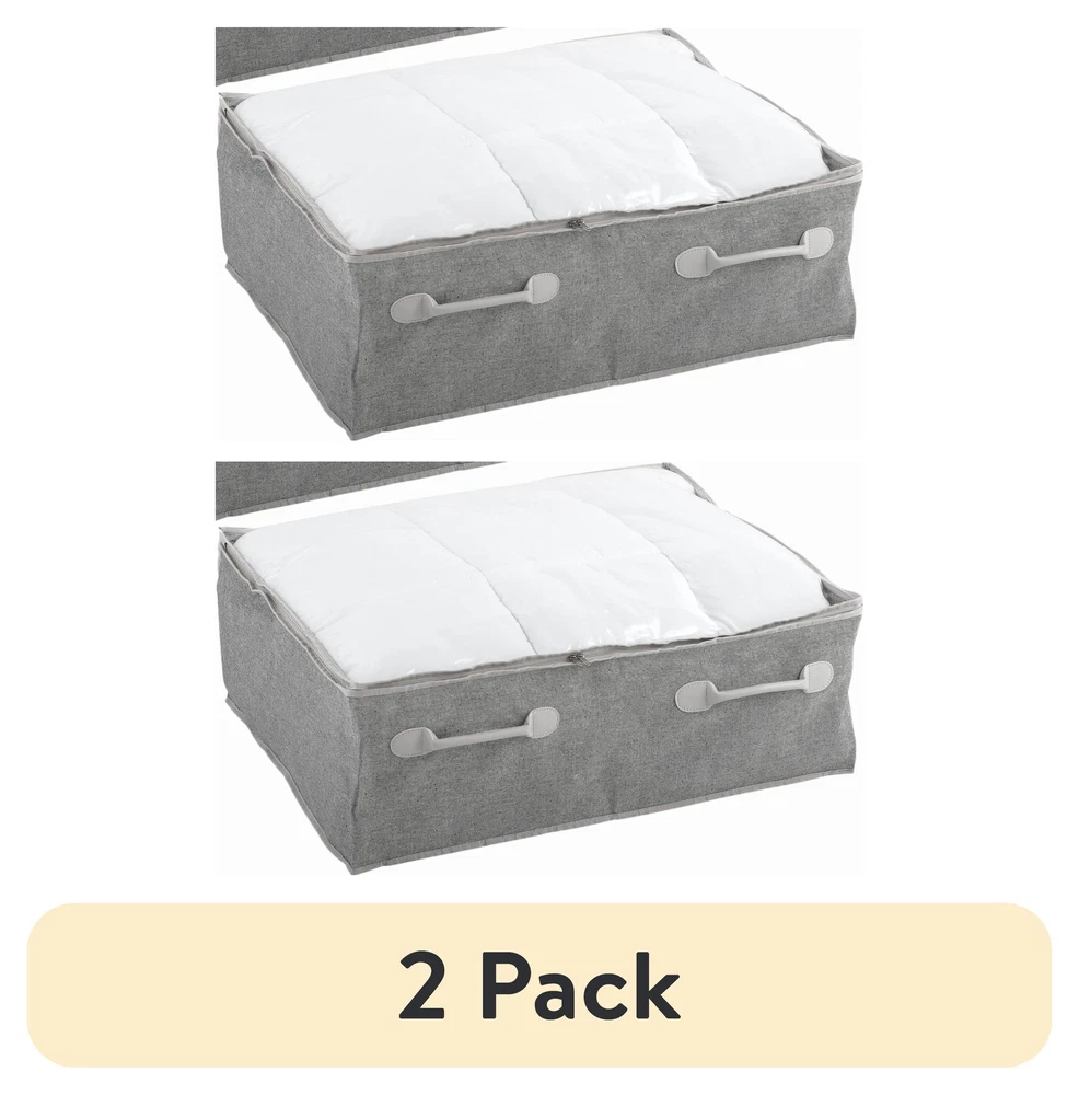 Turn the space under your bed into convenient storage space with the Better Homes & Gardens 2 Compartment Underbed Zippered Storage Bin for adult. This bin makes it easy to keep items stored and out of the way in virtually any bedroom in two separate compartments for improved organization. Crafted of durable gray fabric, this organizer has a padded top with a zipper closure and two side handles that make sliding the bin in and out from under the bed easy. The Better Homes & Gardens 2 Compartment Underbed Zippered Storage Bin is a great way to store shoes, sweaters, out-of-season clothing, and other items while keeping them close by and easy to retrieve. Perfect for storing clothing and other items under virtually any bed 2 compartments keep stored items separate for improved organization Has a padded top with a zipper closure Features two side handles that make sliding the bin in and out from under the bed easy Age group:adult Measures 26" x 21" x 10" Weighs: 0.77 lbs. A great way to store and keep items organized while keeping them close by and easy to retrieve Comes ready to use with no assembly required Crafted of durable neutral gray polyester and other fibers Ideal for shoes, sweaters, out-of-season clothing, and more