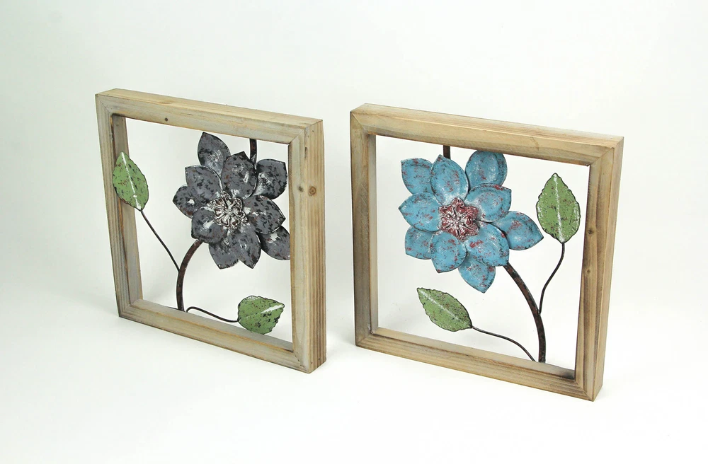 Give new life to your walls and hang something that's rich in texture and style with this 2 piece set of floral bloom wall sculptures. Each piece is creatively crafted of metal with unfinished wooden frames. The set elegantly combines art with nature, creating a beautiful blending of design and subtle color. Each 12-inch high, 12-inch long, and 1.5-inch wide piece easily attaches to just about any wall with attached sawtooth hangers on the backs. Combine them with other decorative items to create a custom focal point on your entry wall, and hang them in the bedroom, bath, or on a sheltered porch. They make a wonderful gift for flower lovers. Our eBay Store About Us Add to Favorite Sellers 2 Piece Sculpted Metal Flowers Wall Hanging Set With Wooden Frames OVERALL SIZE - Each Measures 12 Inches High, 12 Inches Long, 1.5 Inches Thick QUALITY CONSTRUCTION - Creatively Crafted of Metal and Wood in a Stylish Artistic Design Rich with Texture UNIQUE FINISH - Hand-Painted For a Great Natural Feel EASY INSTALL - Mount Easily to Your Wall GREAT GIFT - For Yourself or For Friends and Family Give new life to your walls and hang something that's rich in texture and style with this 2 piece set of floral bloom wall sculptures. Each piece is creatively crafted of metal with unfinished wooden frames. The set elegantly combines art with nature, creating a beautiful blending of design and subtle color. Each 12-inch high, 12-inch long, and 1.5-inch wide piece easily attaches to just about any wall with attached sawtooth hangers on the backs. Combine them with other decorative items to create a custom focal point on your entry wall, and hang them in the bedroom, bath, or on a sheltered porch. They make a wonderful gift for flower lovers. Product Details Color Multicolored Height 12 Length 12 Weight 2.3 LB
