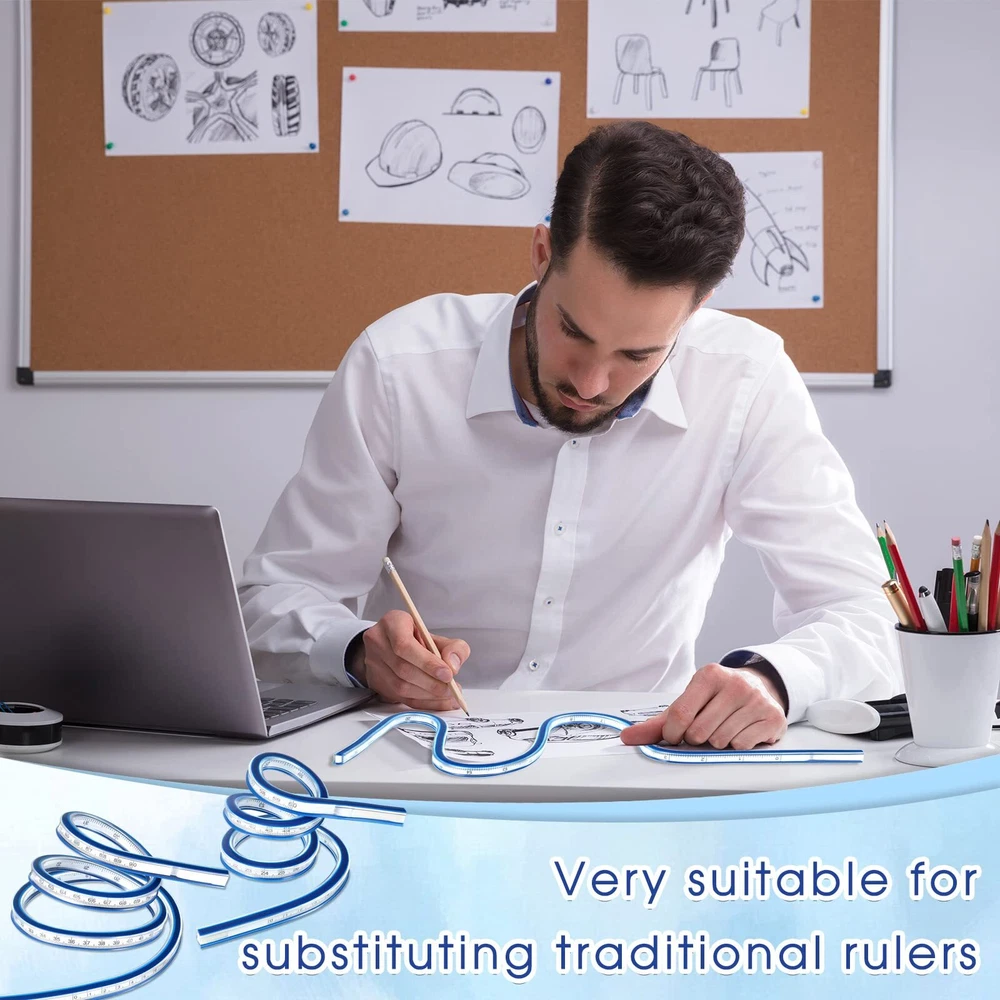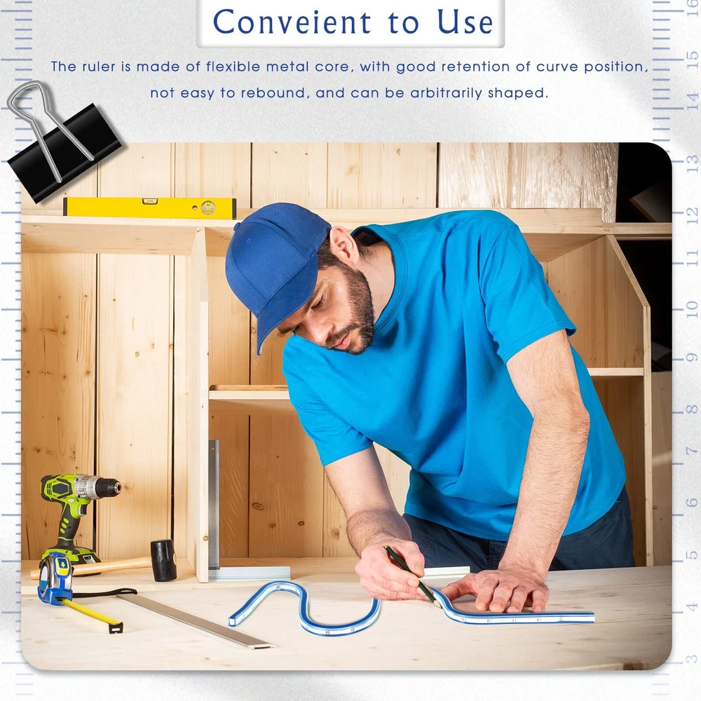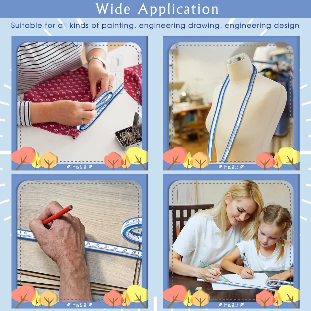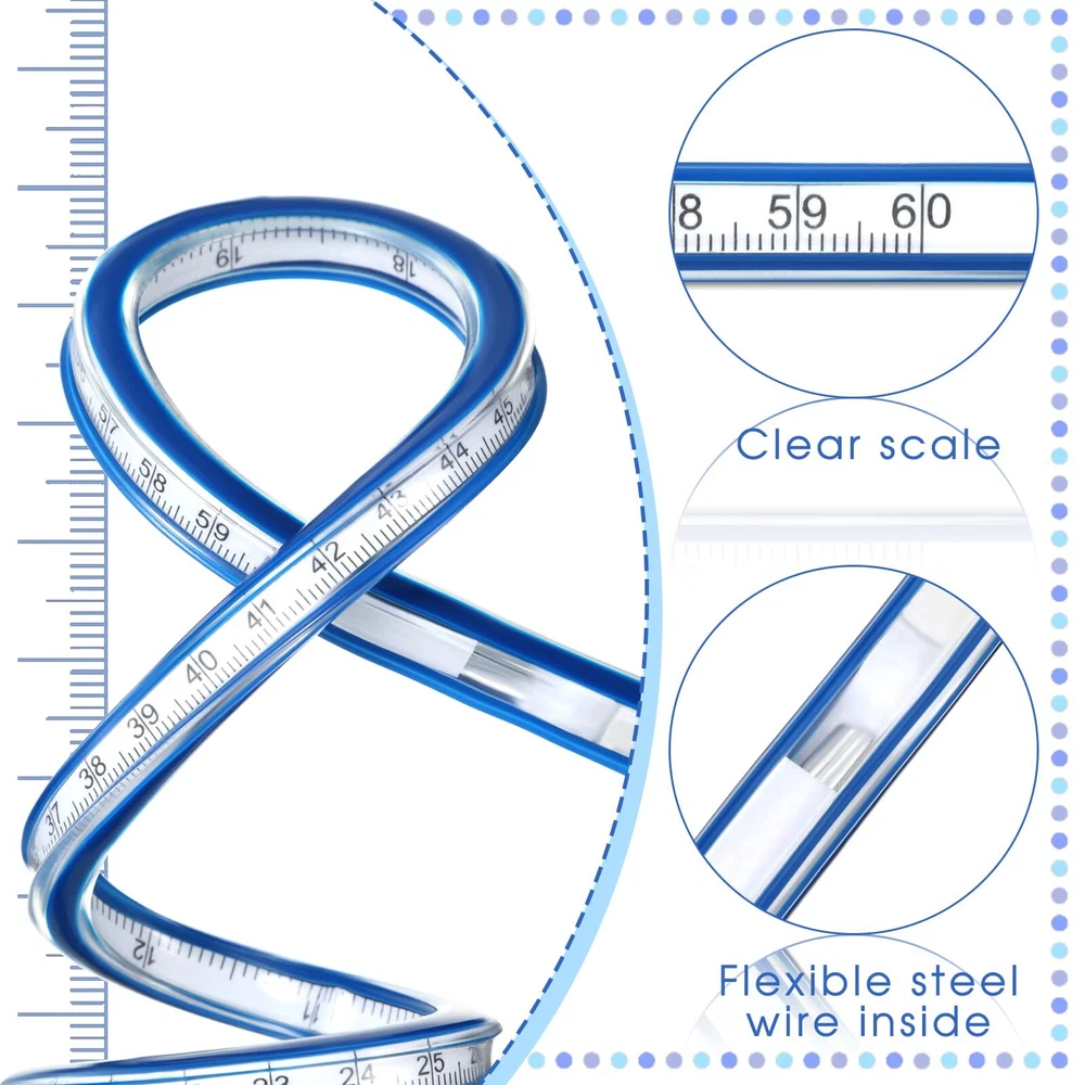 Features: Practical gifts: You can give our flexible rulers as presents to your parents, coworkers, relatives and more, they are good tools for measurement work. Double choices: Our curve rulers have 2 different sizes, which can meet your measurement needs for different uses, you do not need to repeat the purchase. Specifications: Main material: PVC and metal Color: as picture shown Size 1: about 24 inches Size 2: about 36 inches Package includes: 2 x Flexible ruler Notes: Manual measurement, please allow slight errors on size. The color may exist a slight difference due to different screen displays. Winding accidents may exist, small children should use them under adult supervision. Package Content: you will receive 2 pieces of flexible rulers, in the sizes of approx. 24 inches and 36 inches, the 2 different sizes can meet your daily use and replacement needs, you can use them according to your habits Easy to Use: when drawing a curve, first determine a sufficient number of points on it, torsion the flexible curve ruler so that it connects points at different positions, and then use the pen to draw a curve smoothly along the ruler after pressing firmly; Our drawing ruler adopts raised margin design, which makes it easy for you to underline with pen and ink Convenient to Read: our curve ruler can be twisted into various shapes, it can be rolled up for easy storage, the built in scale is accurate and not easy to be scratched, it can be applied on both sides, there are metric and imperial measurement expressions Detailed Material: the outer layer of our foldable ruler is mainly made of PVC, which is not easy to break and has a long service life, the built in metal strip material can be bent arbitrarily with good stability and flexibility Diverse Use Scenes: our flexible curve ruler is not only suitable for daily use, but also can be applied to drawing, painting, carpentry, engineering, sewing and more, brining you good use experience