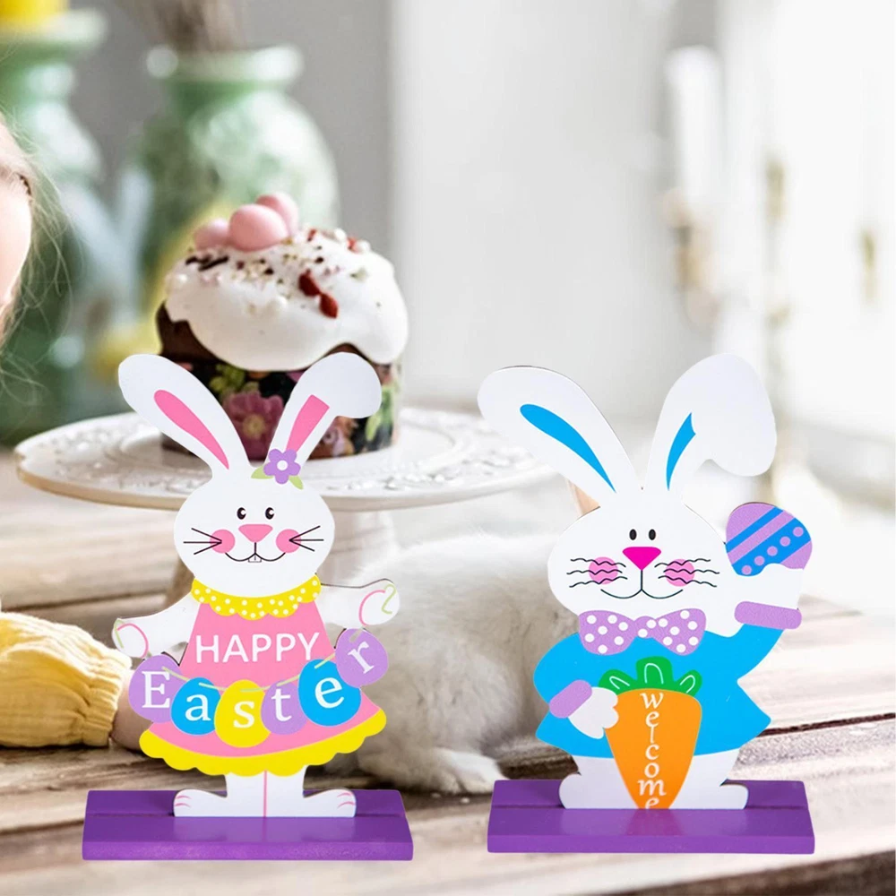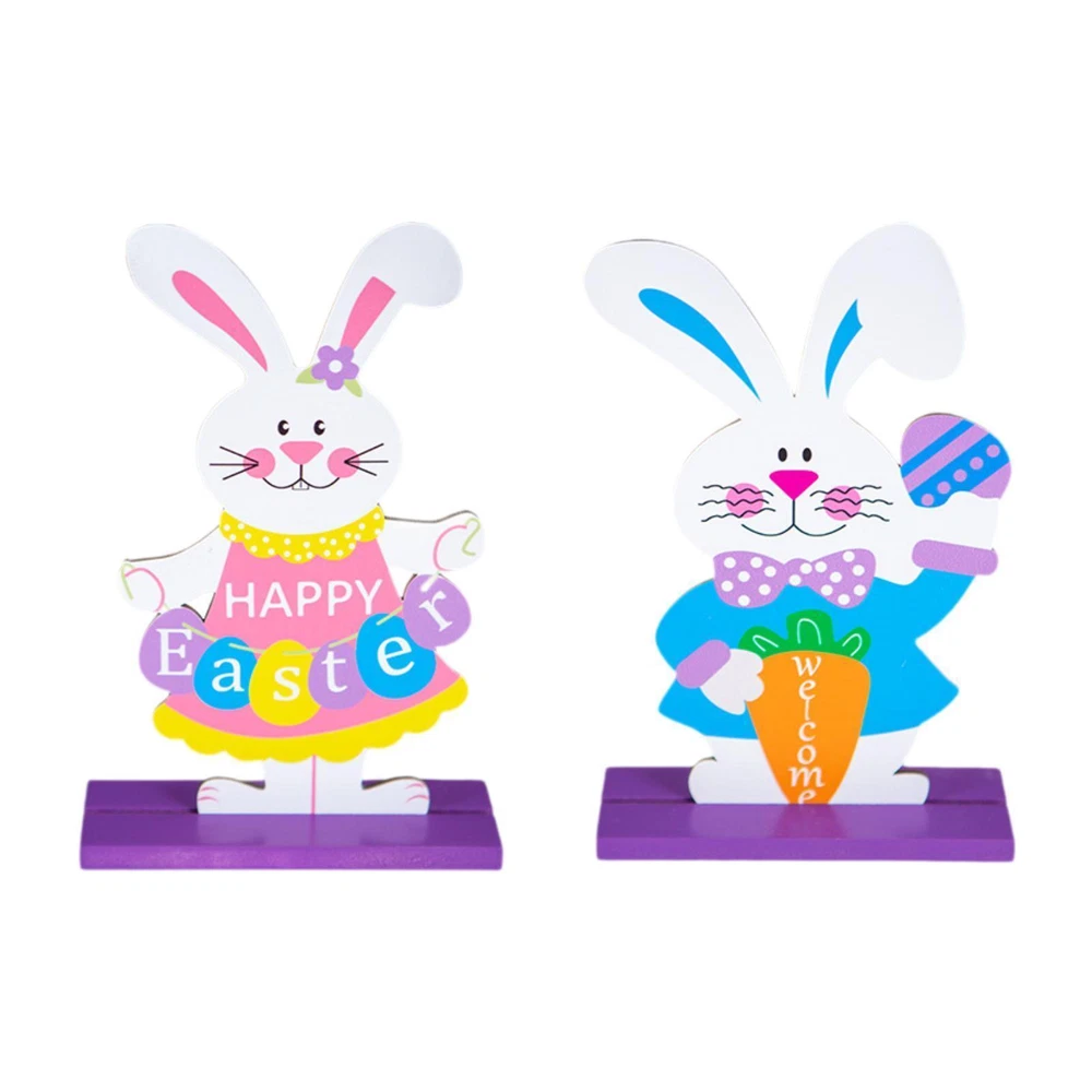 2 Pieces Easter Rabbit Wood Table Sign Ornament Lightweight Height 18cm
