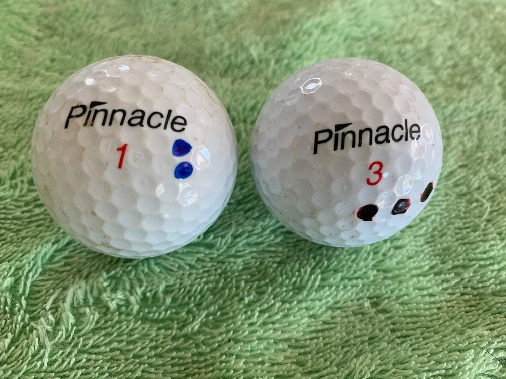 2 Pinnacle Golf Balls #1 GoldLS Pinnacle #3 GOLD LS golfballs used