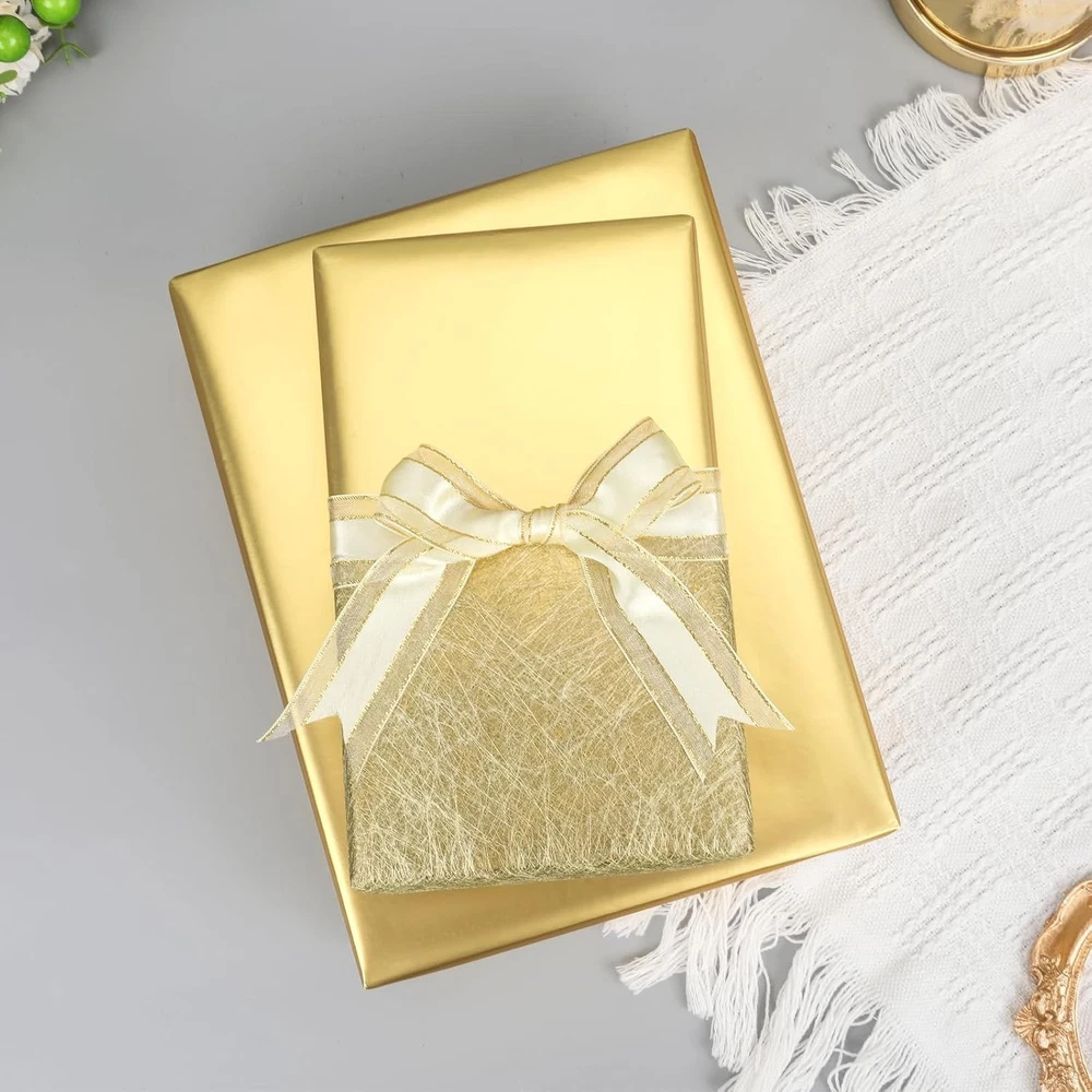 This wrapping paper is absolutely stunning! The rich metallic gold has such an elegant sheen and feels substantial in your hands. It cuts beautifully and holds its shape without tearing. I love that it's eco-friendly too. Perfect for making any gift look luxurious!