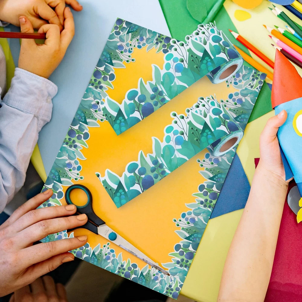 2 Rolls Scalloped Bulletin Board Borders - Eucalyptus Die-Cut Border Trim Bulletin Board Classroom Bulletin - 65.6 Feet Greenery Plant Borders Classroom Bulletin for School Classroom Offices 8 Rolls Scalloped Bulletin Board Borders Liven up your classroom with this fun and colorful border decoration! Create a fresh new look for bulletin boards, windows, walls, and classroom projects; mix and match with classroom-themed coordinating products. A variety of designs meet the versatile decoration style, and the printing is bright and clear. No matter what the scene is, you can find a suitable decorative bulletin board frame. You can use them almost anywhere, such as creating backgrounds for photo frames, making DIY accessories, and can also be cut to the desired size to help you make crafts; Great gift for friends and more. Greenery Classroom Decor: The Boho Bulletin Board Borders has 2 rolls of greenery plant patterns and can also be used as a suitable choice for the border of the green board classroom bulletin board; Students will love that the boho style classroom decorated with green color bulletin boards will transform your space into a beautiful work of wall art. Leaf Bulletin Board Borde: Borders classroom bulletin trim measures approx length 32.8ft/10m, width 2.3in/5.8cm, total length 65.6ft.To create a unique decor style and leave you with priceless memories, you can select classroom themes decoration sets and cut it into various shapes and sizes based on your creativity and imagination. High-Quality Material: These greenery bulletin board borders are classroom must haves made of high-quality coated bulletin board paper, not easy to break and deform, thick and durable, the classroom decor bulletin board borders can be easily cut into any length to decorate different places Eucalyptus Die-Cut Border Trim Design: With the help of this vibrant and amusing bulletin board decorations, liven up your classroom!Give walls, windows, school projects, and Eucalyptus Die-Cut Bulletin Board Borders a completely new appearance. It won't just brighten up your chalkboard or bulletin board;It will also encourage students to be more active. Wide Application: This scalloped border decoration is suitable for decorating classrooms, schools, offices, libraries, study rooms and wall notice boards. The bulletin board scalloped borders supplies can be attached to the edges of whiteboards, windows, blackboards, doors, cabinets, notebooks, etc. as eucalyptus classroom decor in schools, classrooms, or homeschooling. Shipping from the USA All of our products are shipped from the USA, ensuring quick delivery to your destination. Payment We offer the following payment methods: PayPal, credit card, bank transfer, and eBay's secure payment system. Free Shipping & Free Returns Shipping within the USA is FREE. Additionally, any return is absolutely free for you. Risk-Free Purchase You have the option to return an item within 30 days without any justification. We cover the return shipping costs! Fast Shipping We ship immediately upon receipt of payment. Generally, the package is delivered within 2-3 days in the USA. If it takes longer, we will contact you. Quality and Costs Made in Europe, USA, China No customs fees or additional charges Total satisfaction guarantee Invoice with declared VAT available upon request in .pdf format Feedback Your feedback is very important to us. After you pay for your purchase, you will automatically receive positive feedback from us.