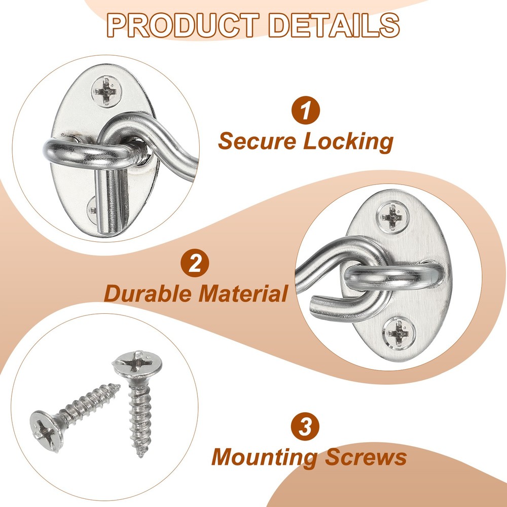 Document What is this?Hook eye latch, which is widely used in cabinets, sliding barn doors, cabin doors, swing windows, garages, sheds, gate, back doors, closet doors, front porches, fences, cabinets, shutters, alloy windows, etc., to secure the door by hooking the latch into the eye plate, thereby providing privacy and security.What will I get?The package contains 2 hook and eye latches, with 8 mounting screws. The door latch length is 16.5 cm / 6.5 inch; the mounting plate size is (W*H*Thickness): 40x21x2 mm /1.6 x 0.8 x 0.08 inch, the center distance is 27 mm / 1.1 inch, and the screw length is 15mm / 0.6 inchAre there any advantages of the product?The latch hook adopts the end hook design, which will not automatically unlock due to the push of the door, ensuring security and privacy.The stainless steel electroplating process makes the hook and eye latch durable, not easy to rust or breakage, and can be used for a long time in various weather environments.How to use it?Install the eye plate on the door frame and the hook latch on the corresponding door edge, aligning to ensure proper engagement.Close the door and hook the latch into the eye plate to secure the door in place.To unlock, simply lift the hook from the eye plate to release the door.What should I notice?Please confirm the door latch size is suitable for your door before placing an order. 2 Set Hook and Eye Latch Barn Door Lock Gate Latch 6" with Screws Silver What is this? Hook eye latch, which is widely used in cabinets, sliding barn doors, cabin doors, swing windows, garages, sheds, gate, back doors, closet doors, front porches, fences, cabinets, shutters, alloy windows, etc., to secure the door by hooking the latch into the eye plate, thereby providing privacy and security. What will I get? The package contains 2 hook and eye latches, with 8 mounting screws. The door latch length is 16.5 cm / 6.5 inch; the mounting plate size is (W*H*Thickness): 40x21x2 mm /1.6 x 0.8 x 0.08 inch, the center distance is 27 mm / 1.1 inch, and the screw length is 15mm / 0.6 inch Are there any advantages of the product? The latch hook adopts the end hook design, which will not automatically unlock due to the push of the door, ensuring security and privacy. The stainless steel electroplating process makes the hook and eye latch durable, not easy to rust or breakage, and can be used for a long time in various weather environments. How to use it? Install the eye plate on the door frame and the hook latch on the corresponding door edge, aligning to ensure proper engagement. Close the door and hook the latch into the eye plate to secure the door in place. To unlock, simply lift the hook from the eye plate to release the door. What should I notice? Please confirm the door latch size is suitable for your door before placing an order. Hot Item Payment 1.We accept eBay payment . 2.Payment must be received within 7 business days of auction closing. Shipping 1.We ship to your eBay or Paypal address. Please make sure your eBay and Paypal address is correct before you pay. 2.Items will be shipped within 1-3 business day when we received payment. 3.Delivery time depends on destination and other factors. Description Policy 2 Set Hook and Eye Latch Barn Door Lock Gate Latch 6" with Screws Silver What is this? Hook eye latch, which is widely used in cabinets, sliding barn doors, cabin doors, swing windows, garages, sheds, gate, back doors, closet doors, front porches, fences, cabinets, shutters, alloy windows, etc., to secure the door by hooking the latch into the eye plate, thereby providing privacy and security. What will I get? The package contains 2 hook and eye latches, with 8 mounting screws. The door latch length is 16.5 cm / 6.5 inch; the mounting plate size is (W*H*Thickness): 40x21x2 mm /1.6 x 0.8 x 0.08 inch, the center distance is 27 mm / 1.1 inch, and the screw length is 15mm / 0.6 inch Are there any advantages of the product? The latch hook adopts the end hook design, which will not automatically unlock due to the push of the door, ensuring security and privacy. The stainless steel electroplating process makes the hook and eye latch durable, not easy to rust or breakage, and can be used for a long time in various weather environments. How to use it? Install the eye plate on the door frame and the hook latch on the corresponding door edge, aligning to ensure proper engagement. Close the door and hook the latch into the eye plate to secure the door in place. To unlock, simply lift the hook from the eye plate to release the door. What should I notice? Please confirm the door latch size is suitable for your door before placing an order. Hot Item Payment 1.We accept eBay payment . 2.Payment must be received within 7 business days of auction closing. Shipping 1.We ship to your eBay or Paypal address. Please make sure your eBay and Paypal address is correct before you pay. 2.Items will be shipped within 1-3 business day when we received payment. 3.Delivery time depends on destination and other factors.