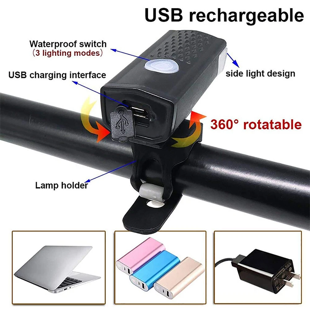 2 Sets USB Rechargeable LED Bicycle Headlight Bike Front Rear Lamp Cycling Light