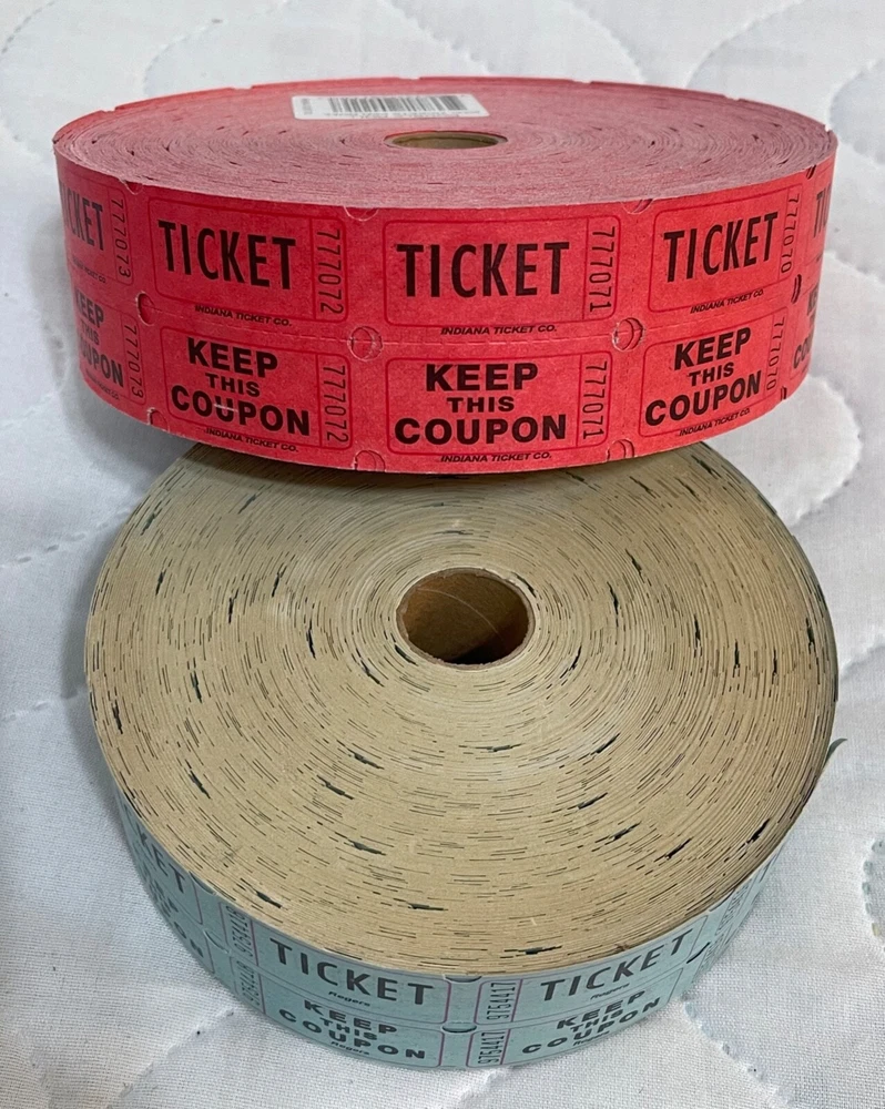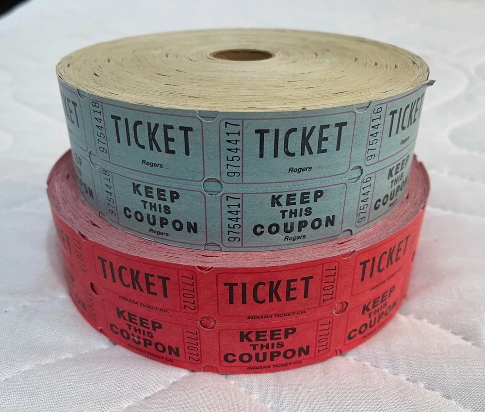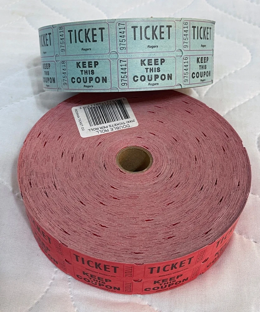 ~ We Do Offer Combined Shipping ~ For Your Consideration We Are Offering This 2 Single Numbered Ticket/Keep Coupon Double Rolls Raffle ~ Carnival ~ Halloween Two partial rolls of both blue & red ~ We used these for admission to our Haunted Attraction ~ Please ask questions ~ We will answer them to the best of our ability ~ Thanks for stopping by ~ Enjoy! Check out our other items ~ Be sure to add us to your favorites list ~ SHIPPING ~ We Recycle All Packaging & Shipping Boxes ~ Your Item May Arrive In Previously Used Packaging Materials Shipping Price Offered Is For The Contiguous U.S. Only ~ Extra Fees Will Apply To Alaska & Hawaii ~ -No Returns are accepted ~ Please feel free to contact us with any questions prior to bidding. Payment is due within 2 days of the end of the auction. -Paypal is the method of payment accepted. -We will ship within 3 business days of the receipt of payment. -This excludes weekends and holidays. -All items are from a smoke free environment. -We are always willing to entertain specific requests and