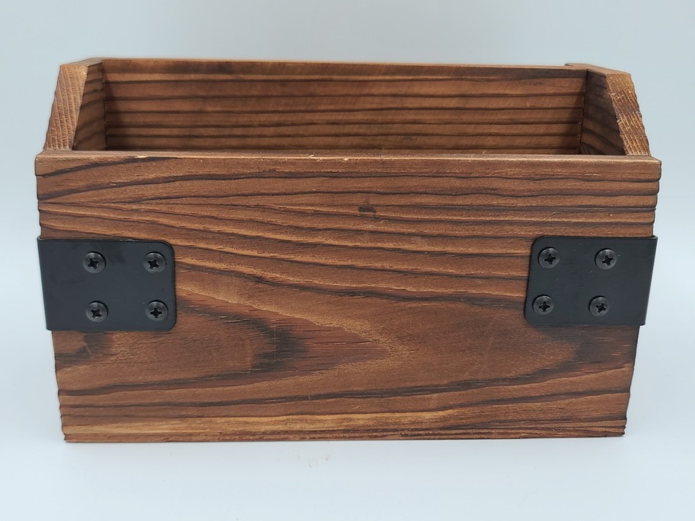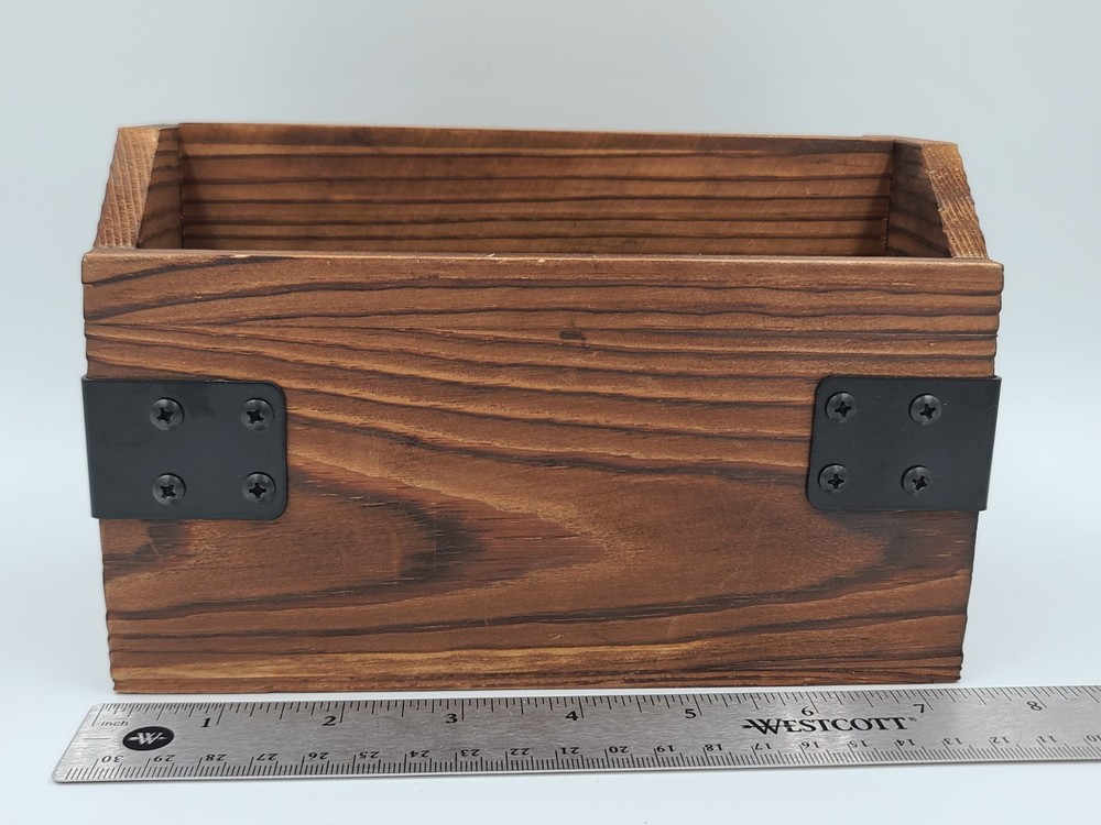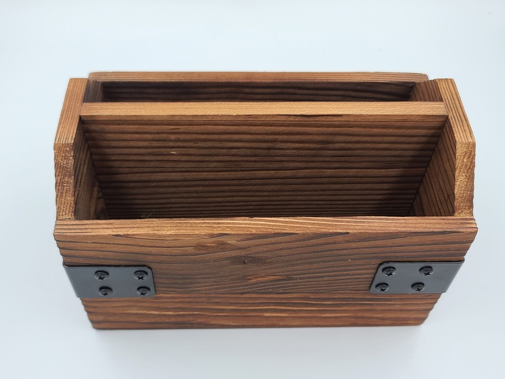 2 Slot Rustic Dark Brown Burnt Solid Wood Remote Control Holder Caddy