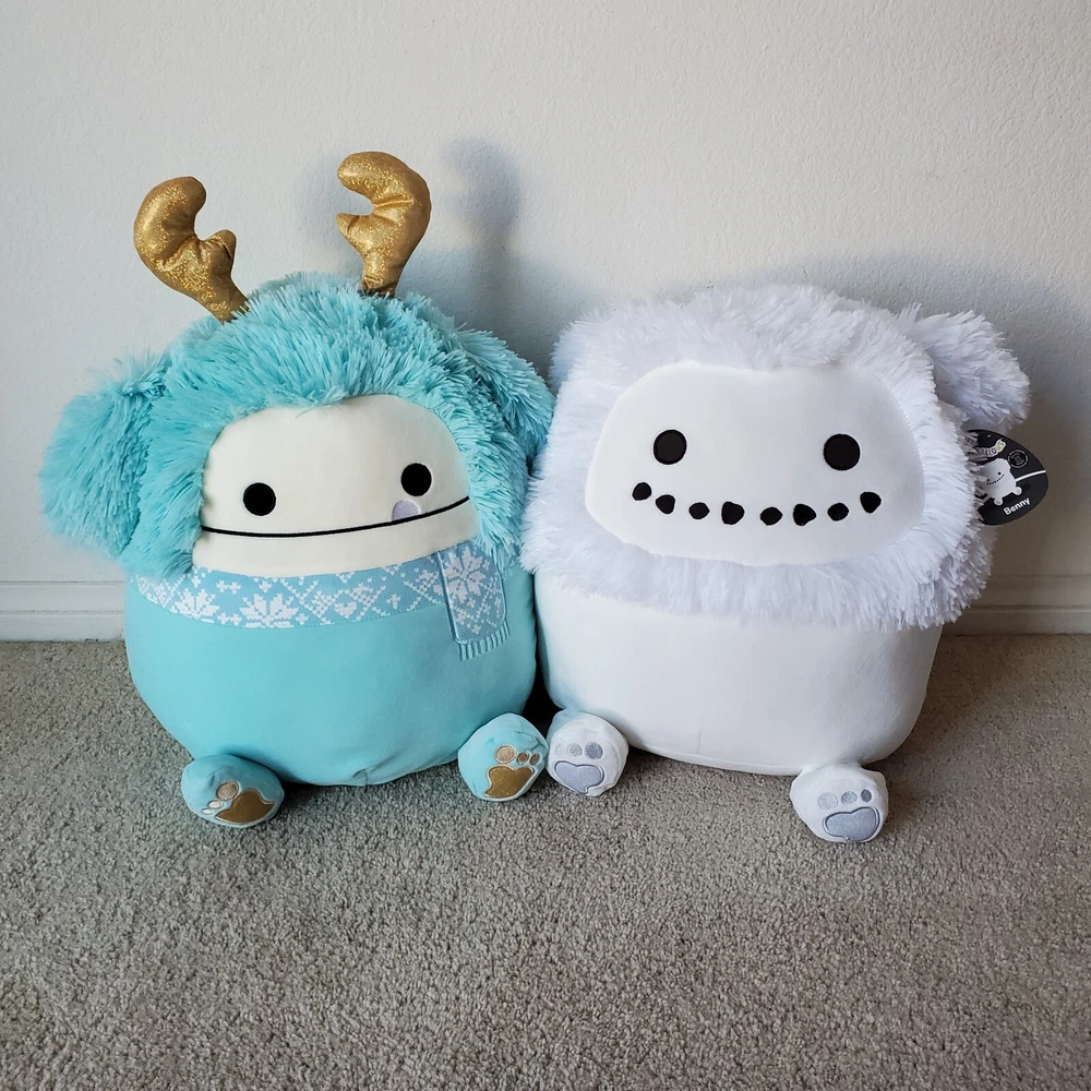 Aki's Attic Welcome to an Aki's Attic Auction! You are bidding on 2 BRAND NEW, 16" Holiday Squishmallows. You will receive Joelle the Bigfoot wearing antlers and a scarf and Benny the Snowman Select Series Yeti. Please see photos. These guys are absolutely adorable and super squishy! Both Benny and Joelle are overstuffed making them extra cuddly and very heavy. Joelle's antlers will stand up as seen in the photos, but they did need to be positioned that way. A perfect gift for a Bigfoot Yeti fan! The items you see in the photographs are the items you will receive. Want a different holiday Squishmallow? Check out my eBay store for more toys. Payments Use eBay checkout and choose the payment method that works best for you. Shipping Shipping cost is calculated from the actual weight of the package and the shipping destination. All shipping options are indicated on the shipping and payments page. I will combine shipping if more than one item is purchased together. If free shipping is offered, your order will ship in an envelope via economy shipping. If you require your item to be shipped more quickly or in a box, please choose a different shipping option at the time of checkout. Feedback I will leave you positive feedback after your payment is received. I hope you will do the same for me. If you are unsatisfied with your order for any reason, please contact me to resolve any issues before leaving feedback. Returns I want you to be happy with your purchase! If you are unsatisfied with your order for any reason, please contact me before initiating a return. If you want to return an item for an exchange or refund, it must be returned in its original condition within 30 days upon receipt and buyer is responsible for return postage. Questions Feel free to email me with any questions!