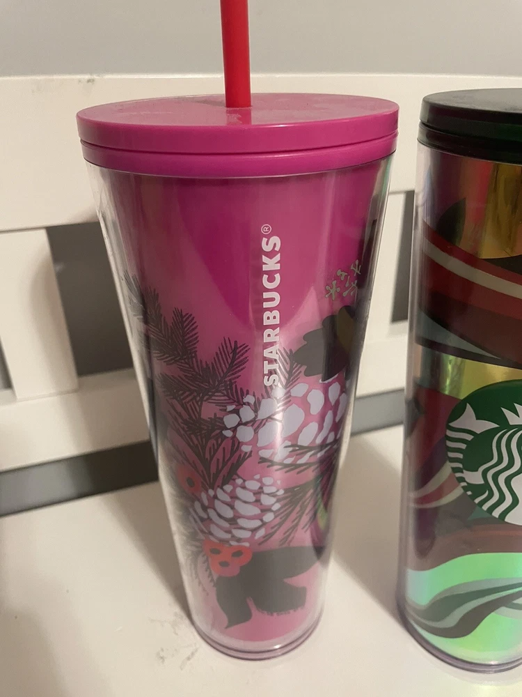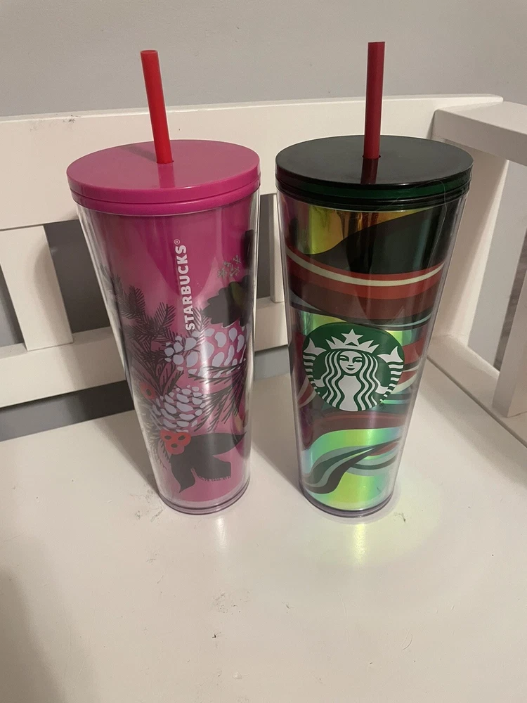 This is 2 Starbucks Holiday 24oz venti cold tumblers. They were used one time and then sat on a shelf. No cracks or broken places and straws are in great shape. Ask any questions you may have before bidding and don’t forget about my FREE SHIPPING!!!
