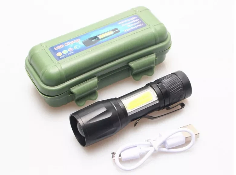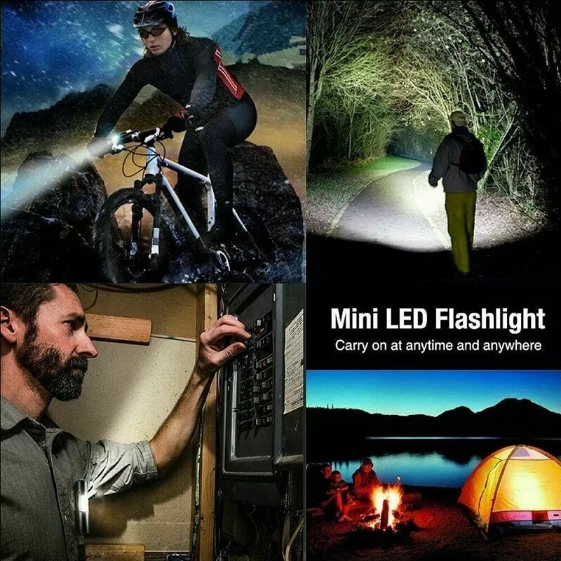 Item Width: 1 in Model: Mini Flashlight Item Height: 4 in Lighting Technology: LED Brand: Unbranded UPC: Does not apply gtin13: Does not apply Type: LED Flashlight Operating Range: 400 m Features: Portable, USB Rechargeable, Waterproof Power Source: Rechargeable Battery Material: ABS, Aluminum, Metal Color: Black Bulb Type: LED Battery Type: USB Rechargeable