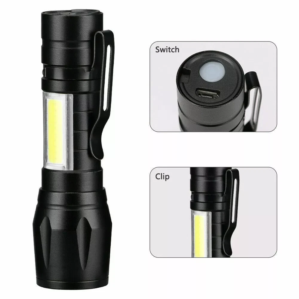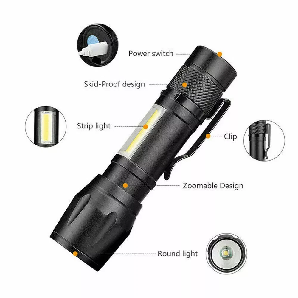 2× Super Bright LED Tactical Flashlight Zoomable USB Rechargeable Lamp 3 Modes