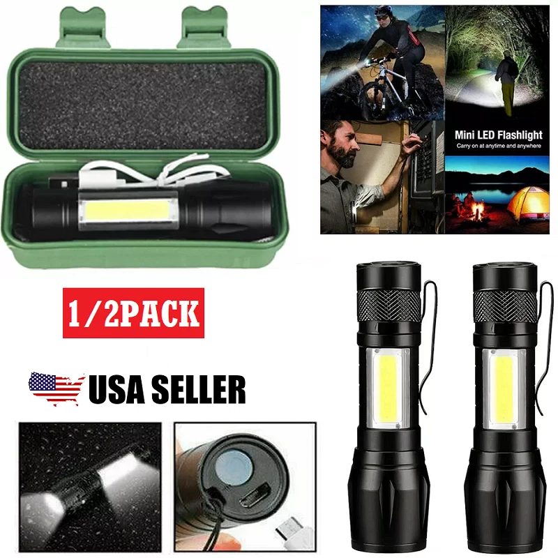 Lon4867 Your Best eBay Store DESCRIPTION PAYMENT SHIPPING RETURN POLICY CONTACT US 2× Super Bright LED Tactical Flashlight Zoomable USB Rechargeable Lamp 3 Modes Features: 1. Ultra Bright: Come with high performance grade XPE+COB light. 2. 3 Light Modes & Zoom: Features 3 adaptable settings: High Brightness, Strobe Brightness. Side COB white light Brightness. Adjustable focus for close or long range. 3. Waterproof: IP65-rated water resistant. Ideal for tactical situations, outdoor activities, camping, hiking, hunting, fishing, home use, military and as a powerful emergency light. 4. USB Rechargeable: Integrated Micro USB charging port enable you to travel anywhere without carrying backup batteries. 5. Portable: Mini size, 3.7'x1.0". It fits perfectly in your pocket, handbag, backpack, or bicycle. Note: Pictures are taken in kind, due to the different colors of the display, there may be deviations. Due to manual measurement, there will be an error of +/- 5 mm. Thank you for your understanding. Package Included: 1/2 x Carry Boxes 1/2 x USB Rechargeable LED Flashlights 1/2 x Micro USB charging cables Item Specifics Brand : Unbranded Type : LED Flashlight Features : Portable, USB Rechargeable, Waterproof Power Source : Rechargeable Battery Material : ABS, Aluminum, Metal Operating Range : 400 m Item Height : 4 in Item Width : 1 in Battery Type : USB Rechargeable Color : Black Lighting Technology : LED Bulb Type : LED Model : Mini Flashlight Payment 1. This is the payment method we can accept: Paypal 2. You can checkout and pay immediately after the auction ends or you complete the purchases. If you need an eBay invoice sent to you by Email, please contact us before making payments. Shipping * All items are in US warehouse and will be dispatched within 24 hours after receipt of payment. Please note that items purchased on weekends and Bank Holidays will be dispatched on the next working day. * It usually takes 3-5 working days for the delivery. But, the transit time is highly depend on Postal Service after we dispatched.If you have any problems, please feel free to contact us. * We ship items to your eBay confirmed address only. Please make sure your address on eBay is matched with your shipping address before you pay. * We are unable to take any responsibility for wrong address, any custom delay or tax. Returns * If the item can't works fine, please check twice to confirm that the item is defective, and contact our customer service representative asap let's know the detailed problem, we will do our best to server you. * If the package damaged during the freight, please refuse to sign for the package and return to us, then contact us promptly. * All of the Non-Seller mistake returns for refund are subject to 20% re-stock fee. And buyer should pay for the return shipping fee.(E.g choose the wrong size or wrong item) * We only accept the original package. Please make sure the item have No man-made sabotage. If you purchased in improper condition, please Note that the shippping and handling fee will not be refunded, all return shipping fee should paid by the buyer unless item DOA. * Guaranteed to Not be DOA and 100% working. Warranty covers replacement or repair. * Buyers are responsible for part return shipping fees on return package. * We reserve the right to refuse any returns for objective reasons. Contact Us * If you are dissatisfied for any reason, please don't leave negative/neutral feedback without asking. We work hard to make sure EVERY CUSTOMER 100% SATISFIED and resolve any problem for you. We always l eave positive feedback to all our customers. * If you are satisfied with the product you received,please leave us Positive Feedback and 5 Scores DSR * We are strive to providing 100% satisfaction services for our customers. Your satisfaction is our greatest pursuit. Positive Feedback is very important to us! Thank you! All rights reserved. Shop Category Store Home Other Hot Item 2 Pack Cooking Kitchen Aprons Work Apron With 2 Pockets for Men Women Black Chef USD 11.18 5 Pairs Stainless Steel Chopsticks Reusable Lightweight Metal Chopsticks 9" USA USD 9.38 Men Body Shaper Slimming Tummy Vest Thermal Compression Shirt Tank Top Shapewear USD 8.08 Double Side Barber Hair Brush Sponge Locking Afro Curl Twist Dreads Coil Wave US USD 8.97 20Pcs Red Silk Roses Artificial Flowers Realistic Bouquet Home Decor valentine USD 11.55 New List Item 4Pcs Sink Sponge Holder for kitchen strong Adhesive sink Caddy Waterproof New US USD 9.78 2×Toe Gap Cleaning Brush Foot Scrubber in Shower Long Handle Silicone Foot Brush USD 8.58 2×Men Facial Cleansing Scrubber Silicone Massage Face Scrub Brush Skin Care Tool USD 8.48 1/2× 3D Adjustable Eye Patches for Left or Right Eyes for Adults and Kids USA USD 7.89 30Pcs Eye Shadow Shields Protector Pads For Eyes Lips Makeup Application Tool US USD 7.79 Help & Info Payment Policy Shipping Policy Return Policy FAQ About Us