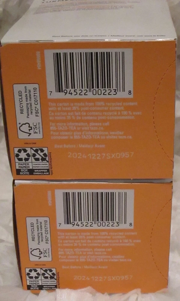 BRAND NEW 2 X BOXES TAZO CAFFEINE FREE *TURMERIC BLISS* HERBAL TEA 20 TEA BAGS EACH BOX: 48g EXP DEC 27 2024 *FREE SHIPPING IN THE USA ONLY* THANK YOU FOR VIEWING THIS LISTING HAVE YOURSELF A GREAT DAY.