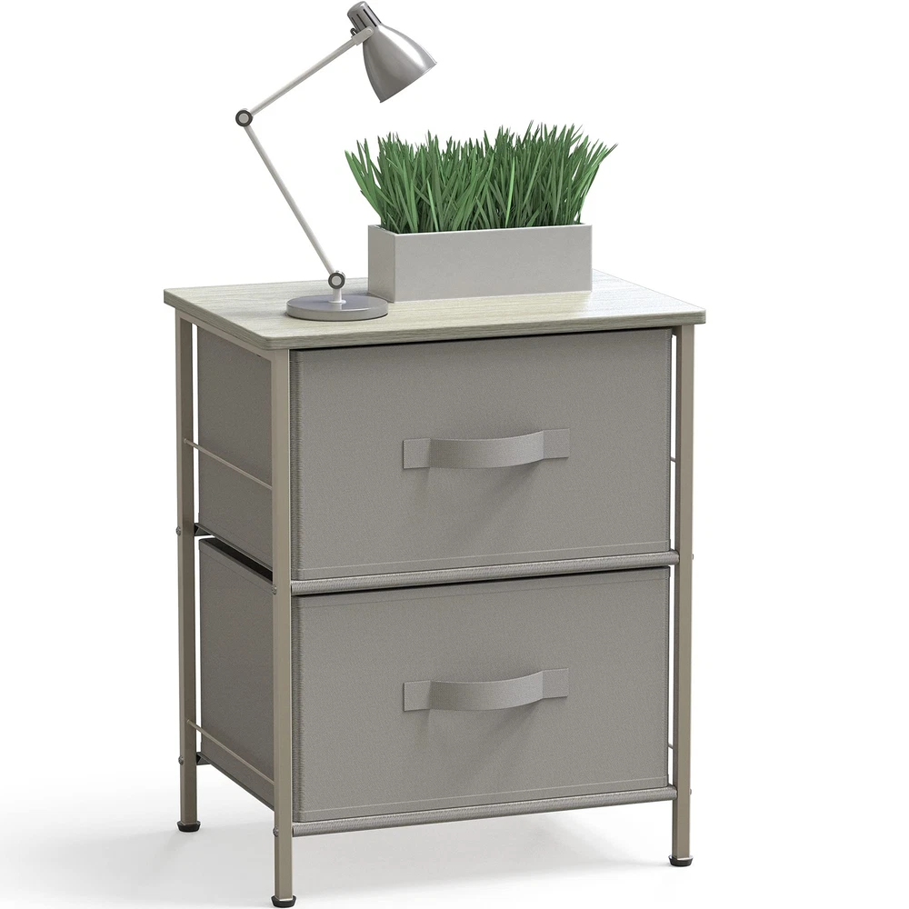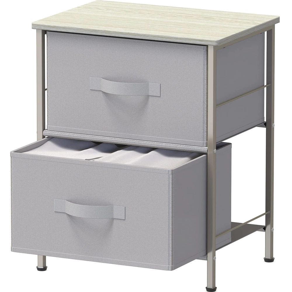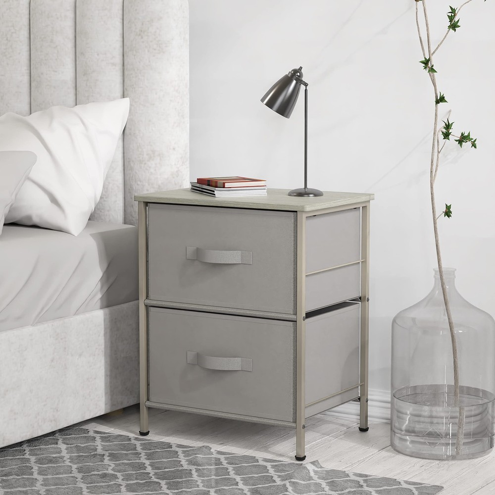 2 Tier Grey Nightstand Dresser with Drawers for Bedroom Storage