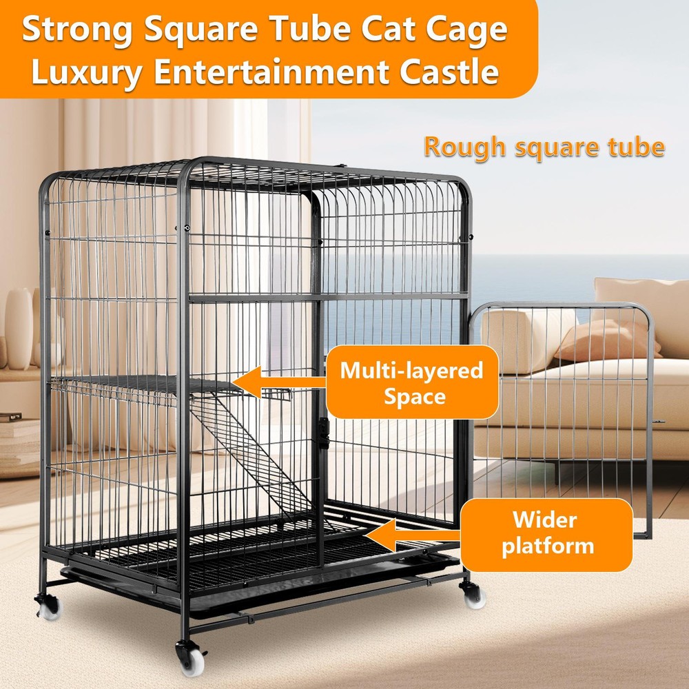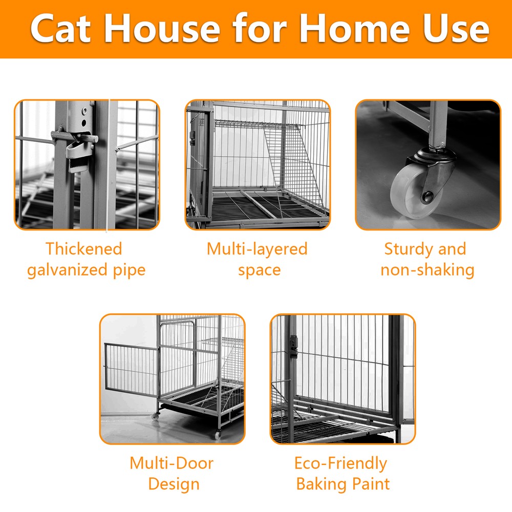 Store category Sign Up Now ! You may also like Product Description Bullet Points: Improved Pet Care: Featuring a three-door design, this cage is not only convenient for pets to enter and exit but also improves ease of use, simplifying your daily pet care routine Seamless Wheeled Mobility: With its bottom equipped with wheels, this indoor cat cage is easily moveable and adaptable to meet different scenarios, allowing for effortless relocation to any corner, both indoors and outdoors Sturdy Cat Home: Give your other pets a haven with this indoor cage made of solid iron material that promises stability and safety. Rabbits, kittens, and small dogs are secure in this sturdy structure Expansive Double-Decker Build: Double-layer design of this indoor cat cage, with built-in ladder and ample space, encourages climbing and play, meeting cats' natural instincts and promoting exercise and health Detachable Tray: Make maintaining your pet's clean and hygienic living environment a breeze with our cat cage's removable tray design. Effortlessly clean up and keep it tidy with this easy and easy-to-use feature, ensuring your pet's happiness and health Introducing our indoor cat cage, perfect for kittens with a three-door design and the ability to be easily moved to any corner, indoors or outdoors. Connects the upper and lower floors and includes a removable tray for easy cleaning. Keep your feline friend safe and happy. Specification: Product name: Cat Crate Product material: Iron Product color: Black Suitable for: Small dogs, kittens, rabbits and other pets Product size: about 95x53x76.5cm/37.4x20.87x30.12 inches Packaging size: about 92x10x81cm/36.22x3.94x31.89 inches Package weight: about 10.12kg/22.3lbs Application scenarios: Indoor and outdoor Packing List: 1 * Cat Cage 2 * Wheels 2 * Wheels with Brakes 1 * Ladder 1 * Tray Notes: 1. Due to different lighting and screen settings, the item color may be slightly different from the picture. 2. Due to different manual measurements, please allow a 1-2cm difference in size. Payment Delivery details Terms of sales About us Feedback & DSRs Payment Before you palce an order, please kindly make sure that you have a paypal account. We accept PAYPAL payment only. Payment should be completed within 2 days after auction closed, or unpaid dispute will be filed for an closing auction. An unpaid case will be filled after 4 days. Delivery details We ship to your eBay address. Each package will be shipped to US by UPS Regular Parcel with tracking number. Please check your shipping address carefully before checkout, it can't be changed if order completed. All items will be shipped within 1-2 business day upon receipt of payment.Orders placed on weekend will be shipped within 3 days. If you do not receive your item in 7-10 business days.please contact us immediately for further assistance. We will be responsible for any damages or losses incurred in the shipping process. About us We maintain high standards of excellence FIVE STAR and strive for 100% customer satisfaction! Positive Feedback is very important to us. We hope that you contact us immediately Before you give us neutral or negative feedback, so that we can satisfactorily address your concerns. We promise to offer the lowest price and high quality produce. Our working time: From Monday to Friday(9:30 am to 18:00pm), we don't working on holidays ,hope you can understand and know that , thank you. Please always talk to us via ebay Message. We appreciate your business and look forward to growing our e-Bay sales with satisfied customers. Feedback Contact us If you have any questions, please feel free to contact with us by ebay Message during our business hours ( 9:30a.m. to 5:30 p.m.), or email us through eBay, we will try our best to help you to resolve it. For any presale or after-sale questions,please do feel free to email us! Due to the time difference, each email will be replied within 1 working day,and weekend will be delayed a bit. Feedback