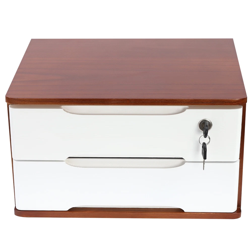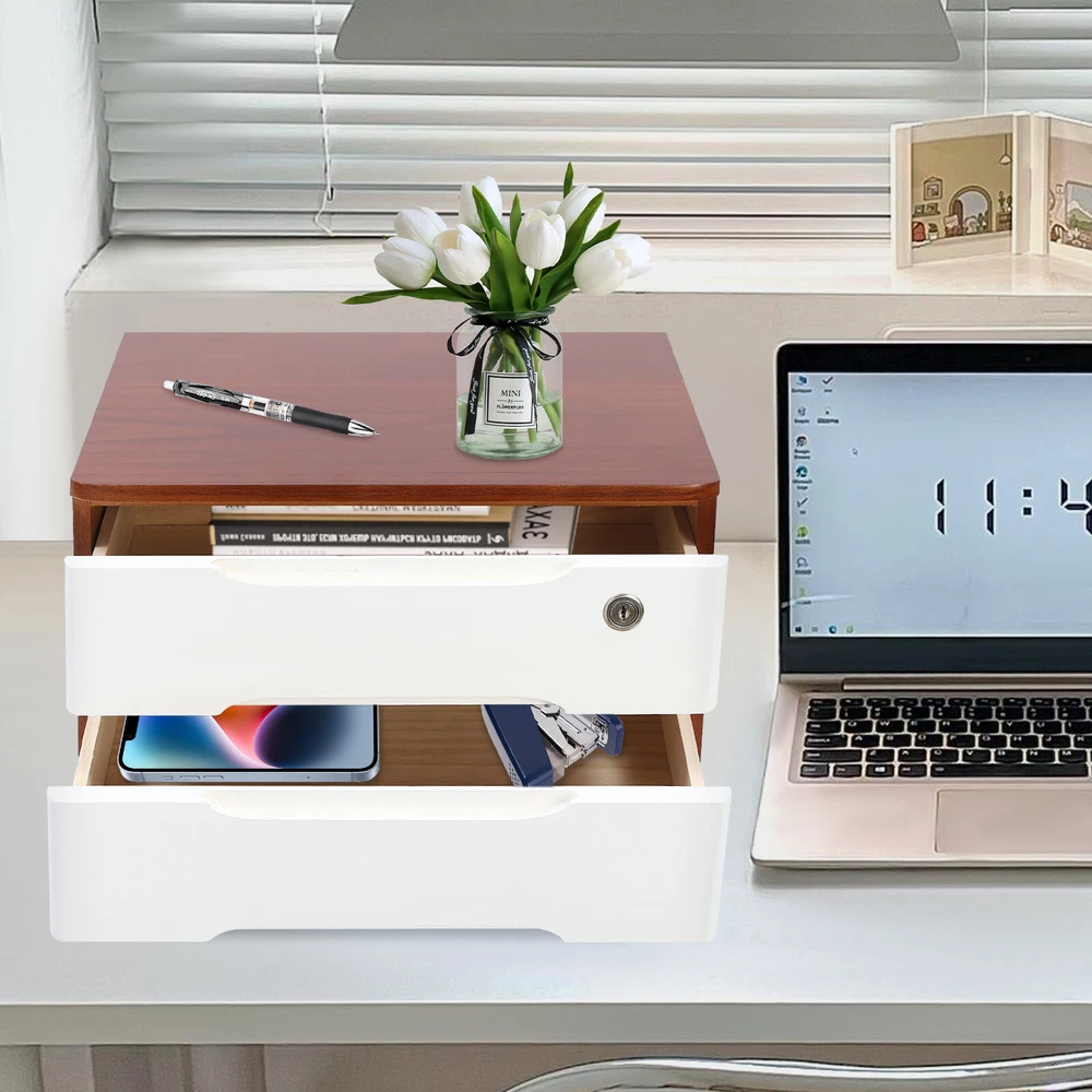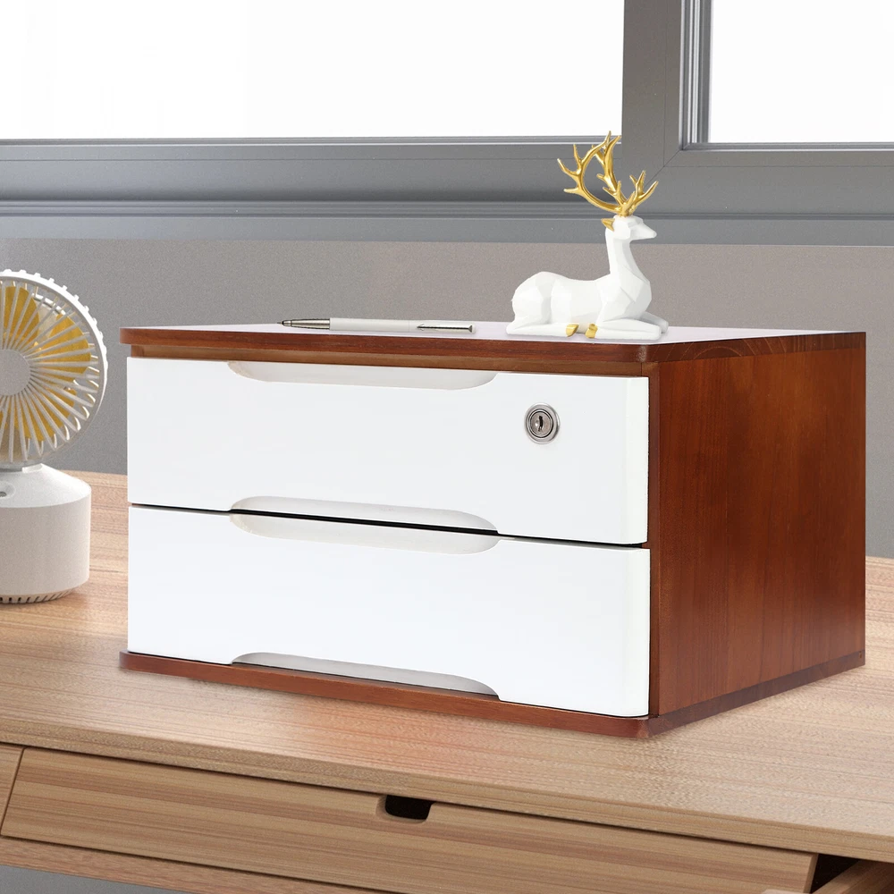 Description Do you feel annoyed by too many items on your desktop that are cluttered and unorganized? Our 2-tier organizer can help you solve this problem. This product is made of high-quality material, which ensures a long service life. The 2 drawers are convenient for you to organize different daily items, and the locking design effective ly protects your privacy. It can effectively help you reduce the pressure on your countertop, which is an ideal choice for you. Key Features Good Material: This product is made of high-quality tung wood with a spray painting process, which is hard, strong, anti-corrosion , not easy to deform, and has a long service life. Categorized Storage: The product has 2 drawers, so you can categorize and store your items in different drawers to give your desktop a neat look. In addition, the top can also be used to hold items, allowing you to maximize the use of your space. Protect Your Privacy: This product features the locking design that locks the drawer and can only be opened with the included key to protect your property. Strong Load-bearing Capacity: High-quality material and stable construction give the product a weight capacity of about 66.14 lbs , so you can store items on it with confidence. Save Space: This product is small in size ( 15.35*11.81*8.46 in ches) , fully utilizing vertical space, thereby reducing the burden on the countertop. Ready to Use: This product does not require assembly, and you can start using it once you receive it, saving the tedious installation process and making it more convenient. Effortless Cleaning: Thanks to the smooth surface and simple construction, you can easily wipe off the dirt on it with a soft cloth. Thoughtful Gift: This is an ideal gift for colleagues, friends, and family to help them organize their belongings and keep their desks tidy. Good Customer Service: We stand behind all our guests and look forward to assisting you with your purchase. It is our pleasure to answer your confusion and questions. The end of the story between us is not "we sell and you buy". Details Comfortable Handles: Each drawer has an ergonomic handle that is not only comfortable but also easy for you to pull the drawer. Smooth Edge: The rounded and smooth edges not only add to the aesthetics of the product but also improve the safety of use. Anti-slip Pad: It can keep the product stable and less likely to slip off while you use it. Application This product can be used in an office, study, bedroom, dresser, kitchen, etc. It is suitable for organizing documents, files, pens, notebooks, handy stickers, remote controls, staplers, cosmetics, greeting cards, tickets, business cards, stationery, jewelry, hair accessories, and so on. Specification Color: Walnut, White Shape: Rectangle Style: Modern Material: Tung Wood Process: Spray Paint Assembly Required: No Number of Tiers: 2 Number of Locks: 1 Number of Keys: 2 Max. Load Capacity: About 30kg/ 66.14 lbs Gross Weight: 4kg/ 8.82 lbs Package Size: 45*33*27 cm/ 17.72*12.99*10.63 in Product Size: 39*30*21.5 cm/ 15.35*11.81*8.46 in Package Included 1* 2-Tier Organizer 2* Keys 4* Anti-slip Pads Notes Please allow the slight color difference caused by the shooting light and the 1-3 cm error due to manual measurement, and make sure you do not mind before ordering. On Feb 16, 2025 at 21:35:01 PST, seller added the following information: