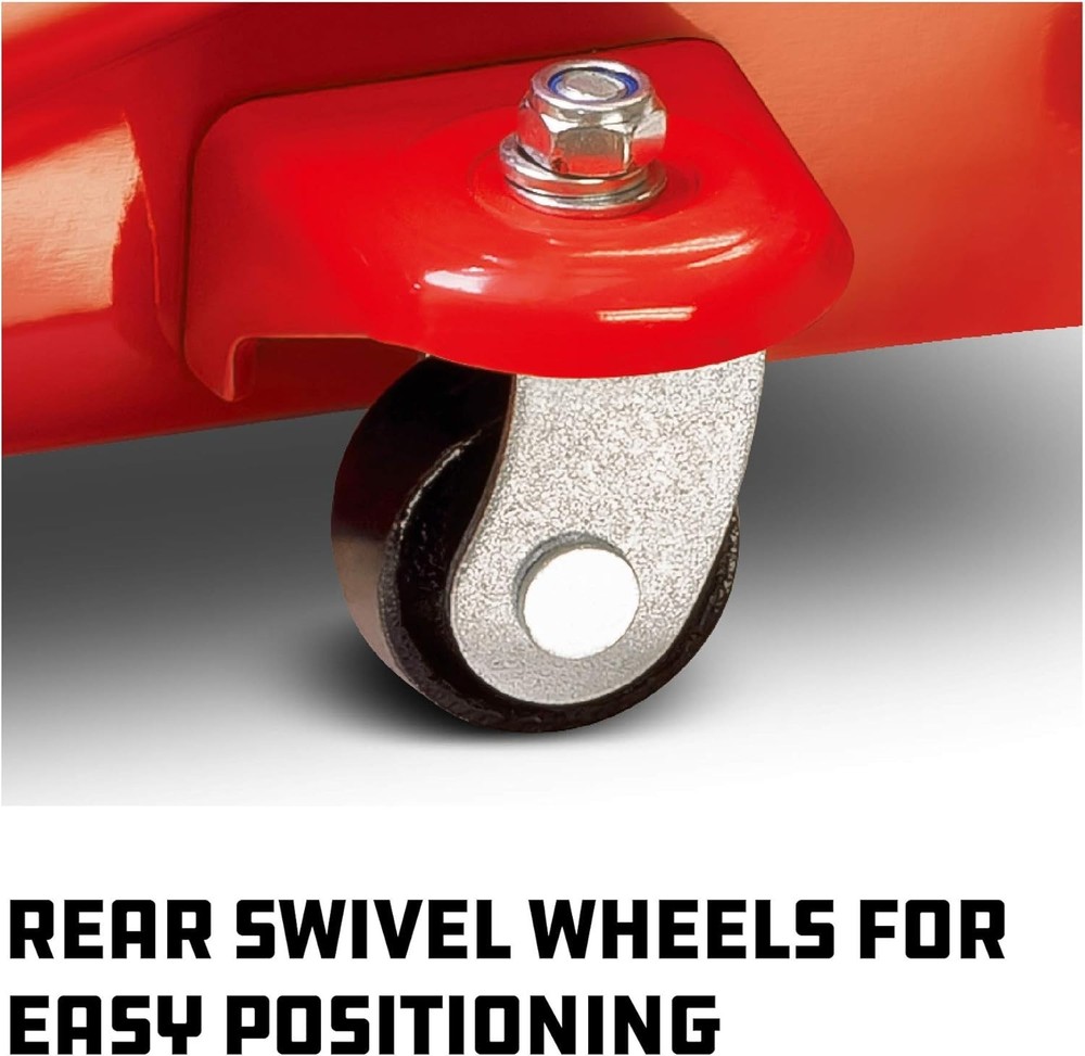 This jack is a game-changer for any garage! The 2-ton capacity handles heavy loads with ease, and the 13-inch lift gives great clearance. The swivel casters make moving it a breeze, even in tight spaces. Lightweight but super sturdy, it’s perfect for quick lifts or serious work. The safety valve adds peace of mind—no regrets buying this!