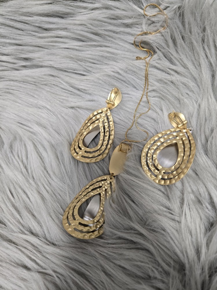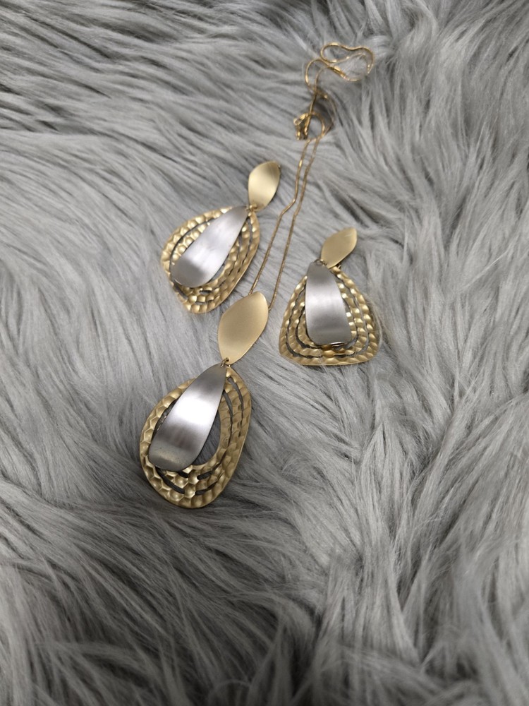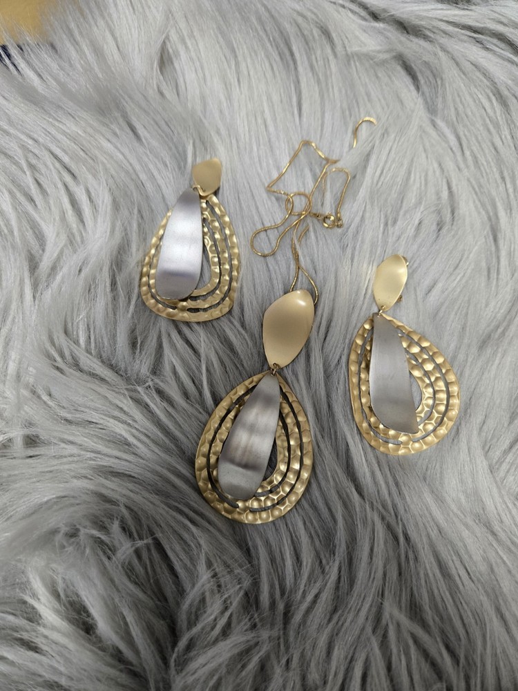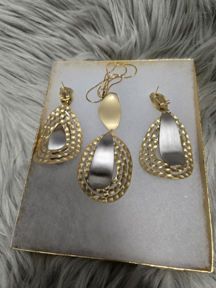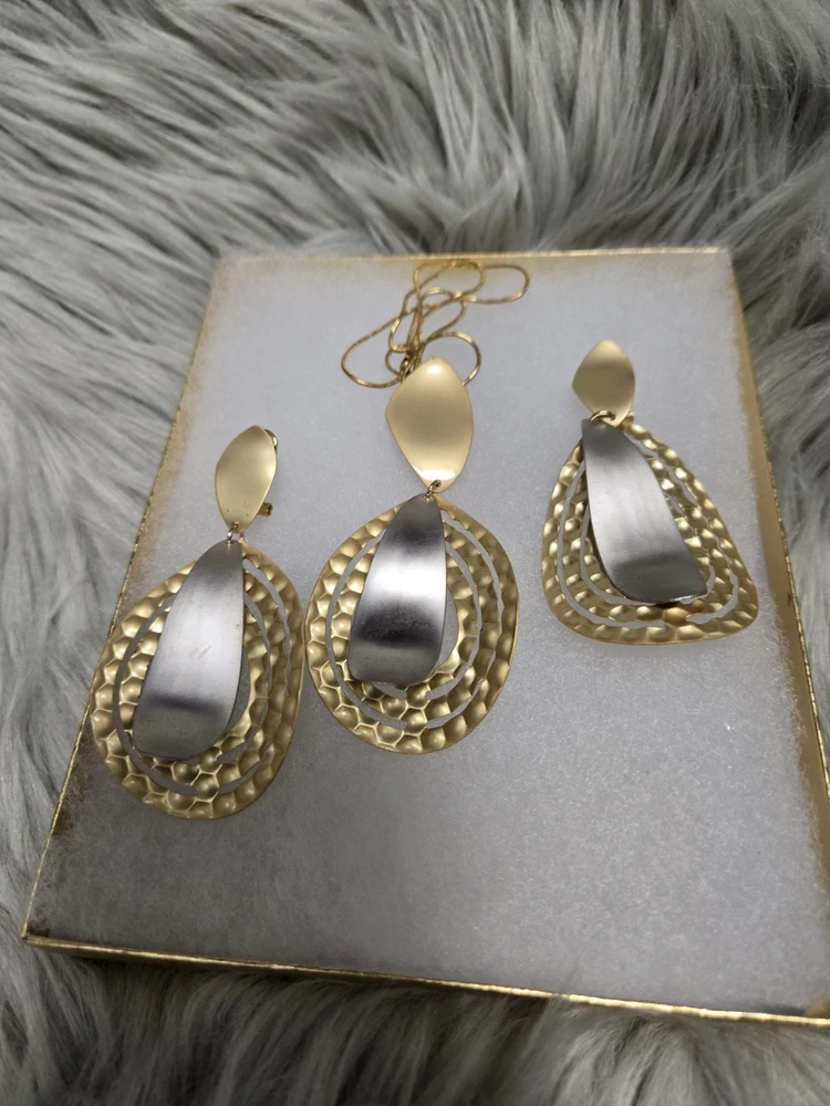 2 Tone Gold Plated Jewelry Set With Free Chain Earrings And Pendant.Large Size