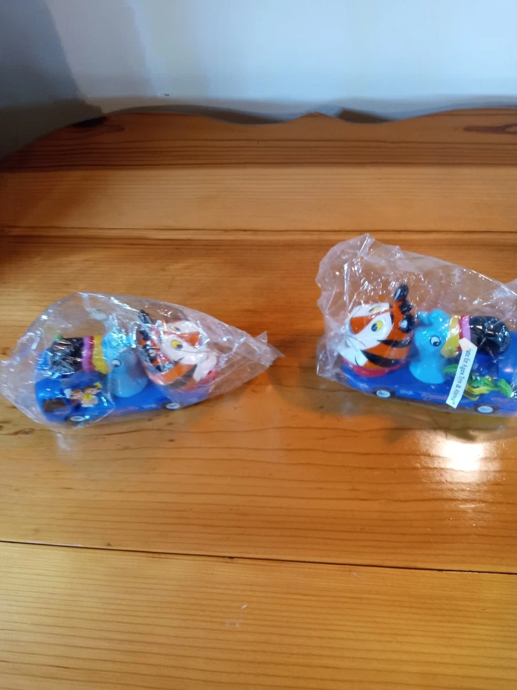 This unopened package features the iconic Tony the Tiger character from Kellogg's cereal advertising. The colorful design and original theme make it a must-have for collectors of vintage advertising. Created in the 1990s in China, this cereal toy is a great addition to any collection. The brand, Kellogg, is well-known for its creative and fun advertising, making this Tony the Tiger toy a perfect example of their marketing style. It's perfect for display or as a gift for collectors of vintage advertising. 2 for the price of one. You can't beat it.
