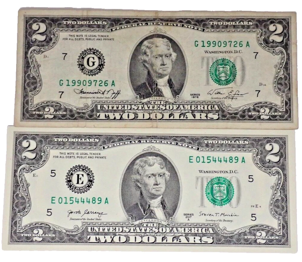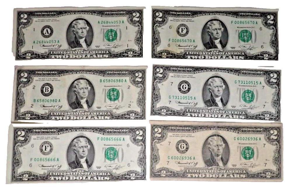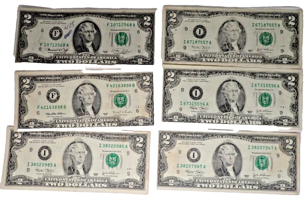 $2 USA Green Seal Banknote Lot - 29 Total Dated 1976 to 2017 SEE OUR GERMAN, AUSTRIAN, OTHER USA AND CHINESE BANKNOTE LOTS AT AUCTION! THANK YOU FOR YOUR INTEREST! The Banknotes that we offer on eBay are from old collections. We are not Banknote Collectors and are not qualified to Grade our offerings. This selection includes the following; 1 - 2017A 4 - 2009 4 - 2003A 6 - 2003 1 - 1995 13 - 1976 Please examine the photographs carefully to make certain that this is the item on which you wish to bid. What you see is what you get. We are Not Accepting Returns on this Auction. Please leave a 5 Star Positive Feedback If you are not happy with your purchase, do not leave Negative Feedback and contact us immediately and we will make it right! We try extremely hard to provide you with quality products at a very reasonable price and as quickly as possible. Please visit our eBay Store (GeorgiaTreasureCollector)