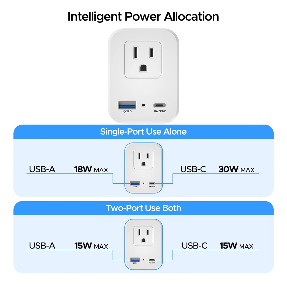 2 USB European Travel Adapter, 2500W International Power Plug for US to Most EU