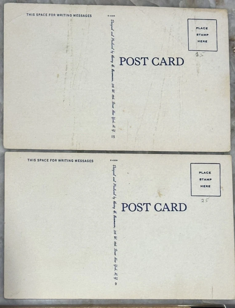 Vintage 1900's Postcards New York City Area Both postcards shown are included. Landmarks of New York City Seal of the City of New York Designed by Harry H Baumann from NY Image of the Library of 5th Ave And of City Hall, built in 1812 Condition is very good overall and has not been posted Measures 5 1/2" x 3 1/2"