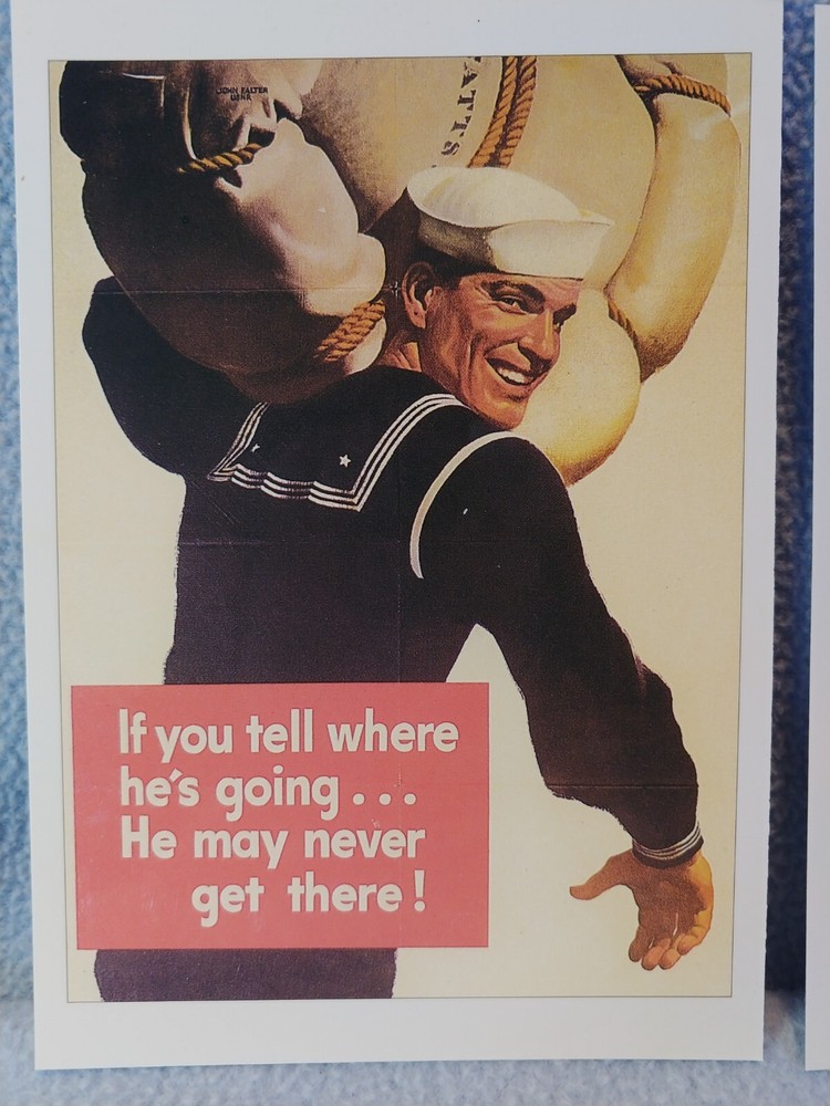 These are 2001 reproductions of wartime cards in very good condition. Size isn't exact. Very suitable for framing You will receive the exact 2 post cards shown in the photos. They will be shipped in a protective plastic sleeve in a 6"×9" envelope. Look closely at all of the photos for the best description and feel free to ask questions. I pack carefully and ship promptly with tracking. I offer combined shipping. A refund after the sale is really the best way to get the lowest shipping cost. Be sure to check out my other cards and postcards in my shop category "Postcards & Cards". I also have many other interesting items in my store. Thanks for looking!