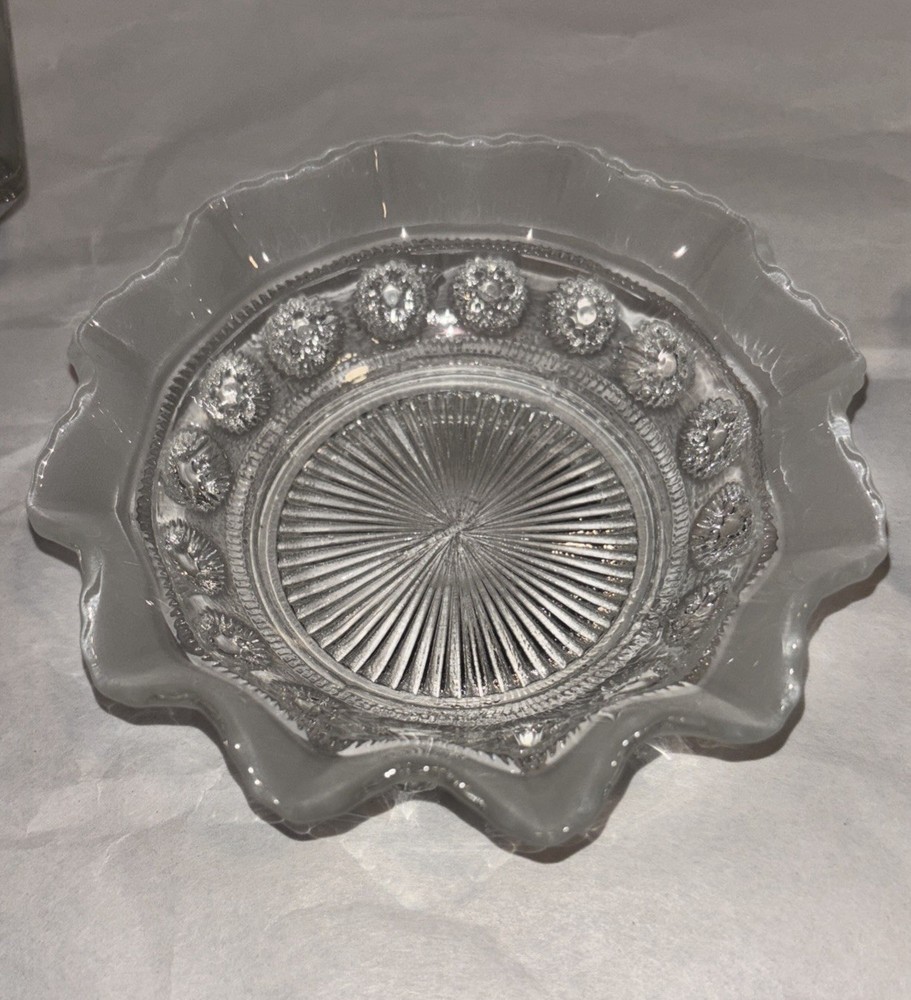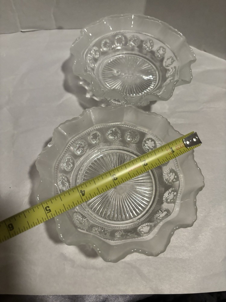 2 Vintage 5" EAPG Clear Glass Blackberry Berry Ruffled Compote Starburst Bowls. Condition is Used. Shipped with USPS Ground Advantage.