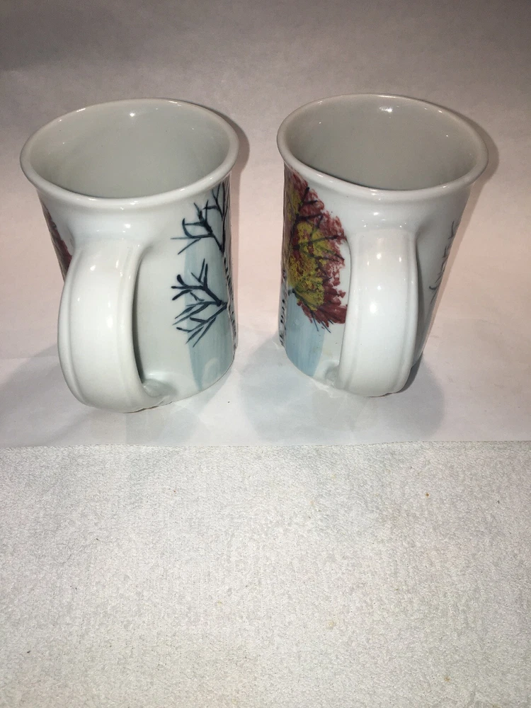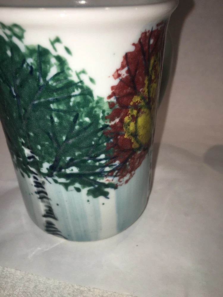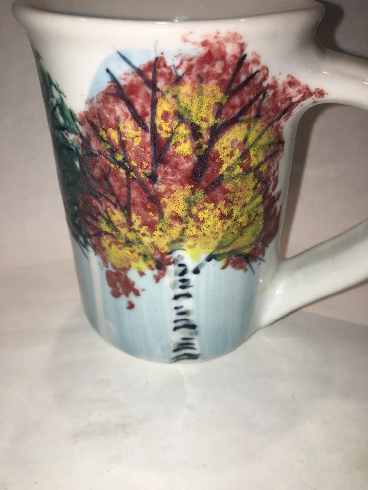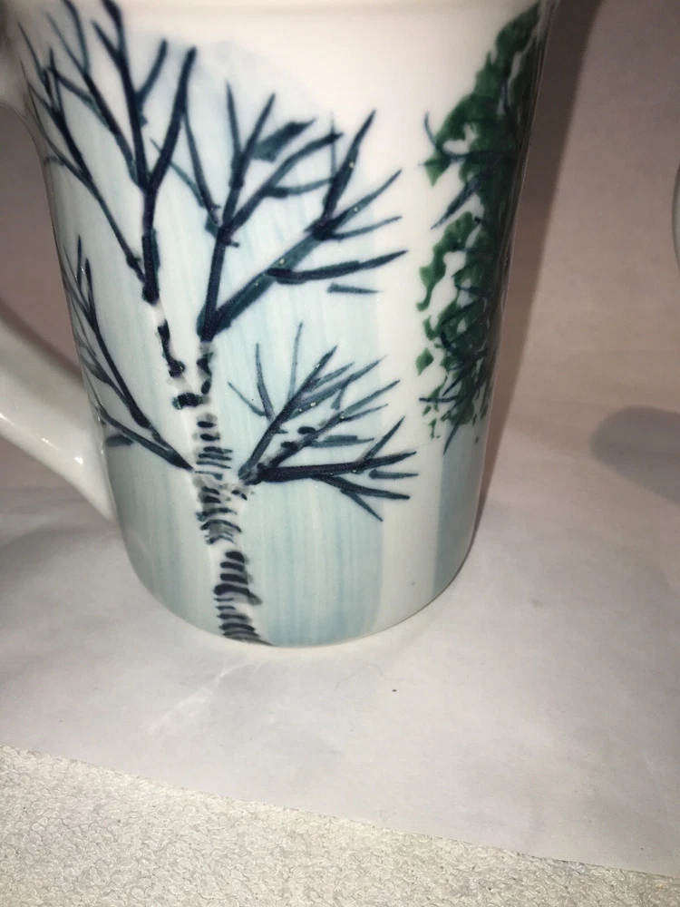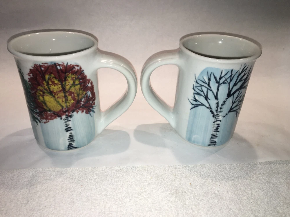 2 Vintage GEORGETOWN POTTERY Maine SEASONAL BIRCH large mugs Discontinued 2007