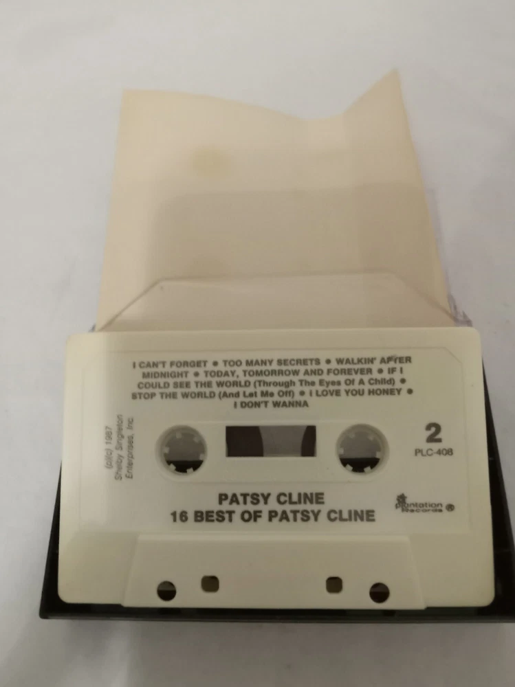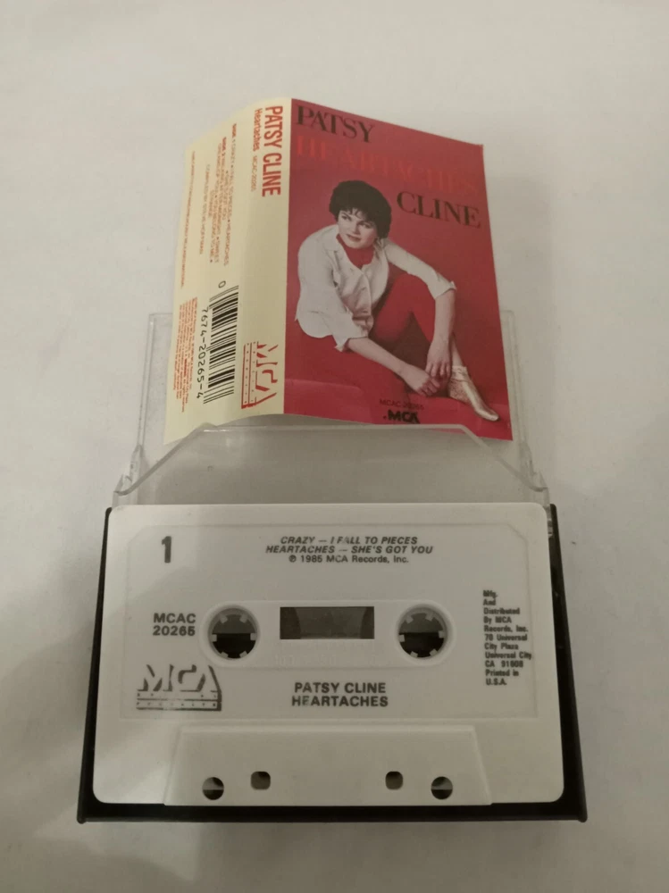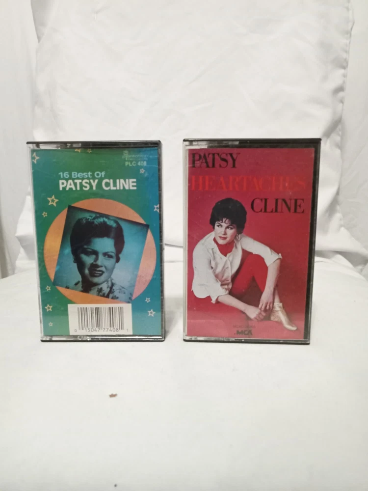 Vintage Patsy Cline cassette tapes, lot of 2. Heartaches, case is ok with minor scuffing inlay is good and tape is in good condition with no damage cat# MCAC 20265 16 Best of Patsy Cline, case has very minor scuffing, inlay is fine and tape is in good condition, cat# PLC 408