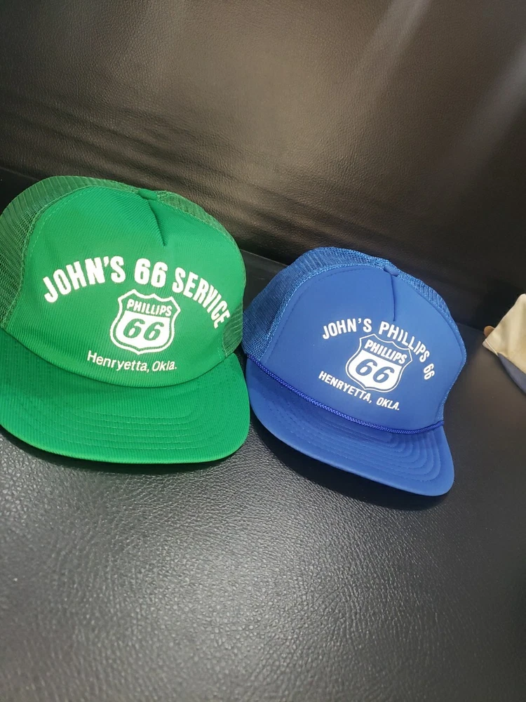 These tro vintage Phillips 66 patch trucker hat is a must-have for any collector or fan of retro style. The multicolor design features the iconic Phillips 66 logo and is made from high-quality cotton fabric. One hat has had foam vacuumed out and then starched for appearance. The adjustable size and snapback closure ensure a comfortable fit for any head size. Whether you're looking to add to your hat collection or just want a unique piece to wear, this hat is perfect. The USA theme and vintage design make it a great conversation starter and a unique addition to any outfit. Don't miss out on this rare find!