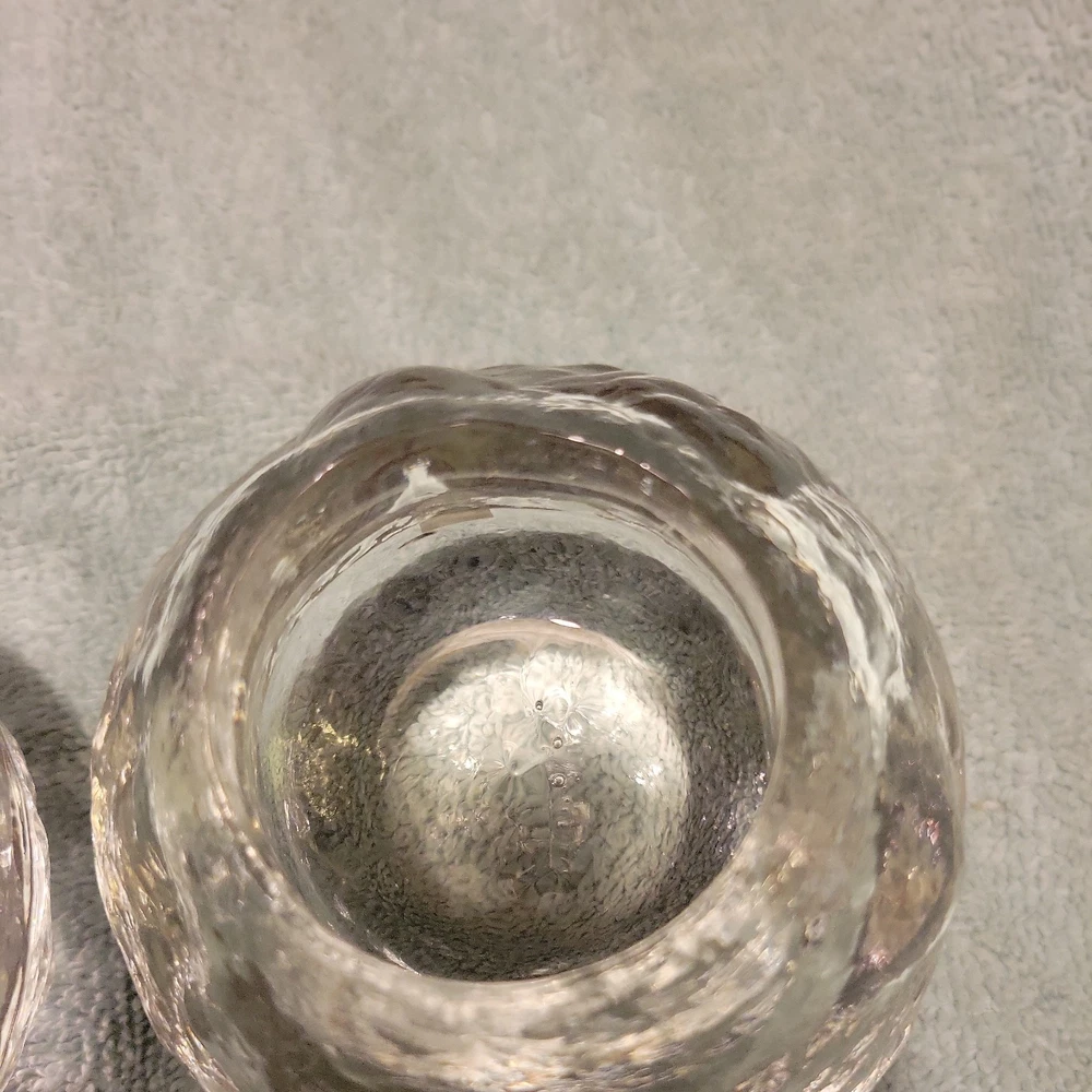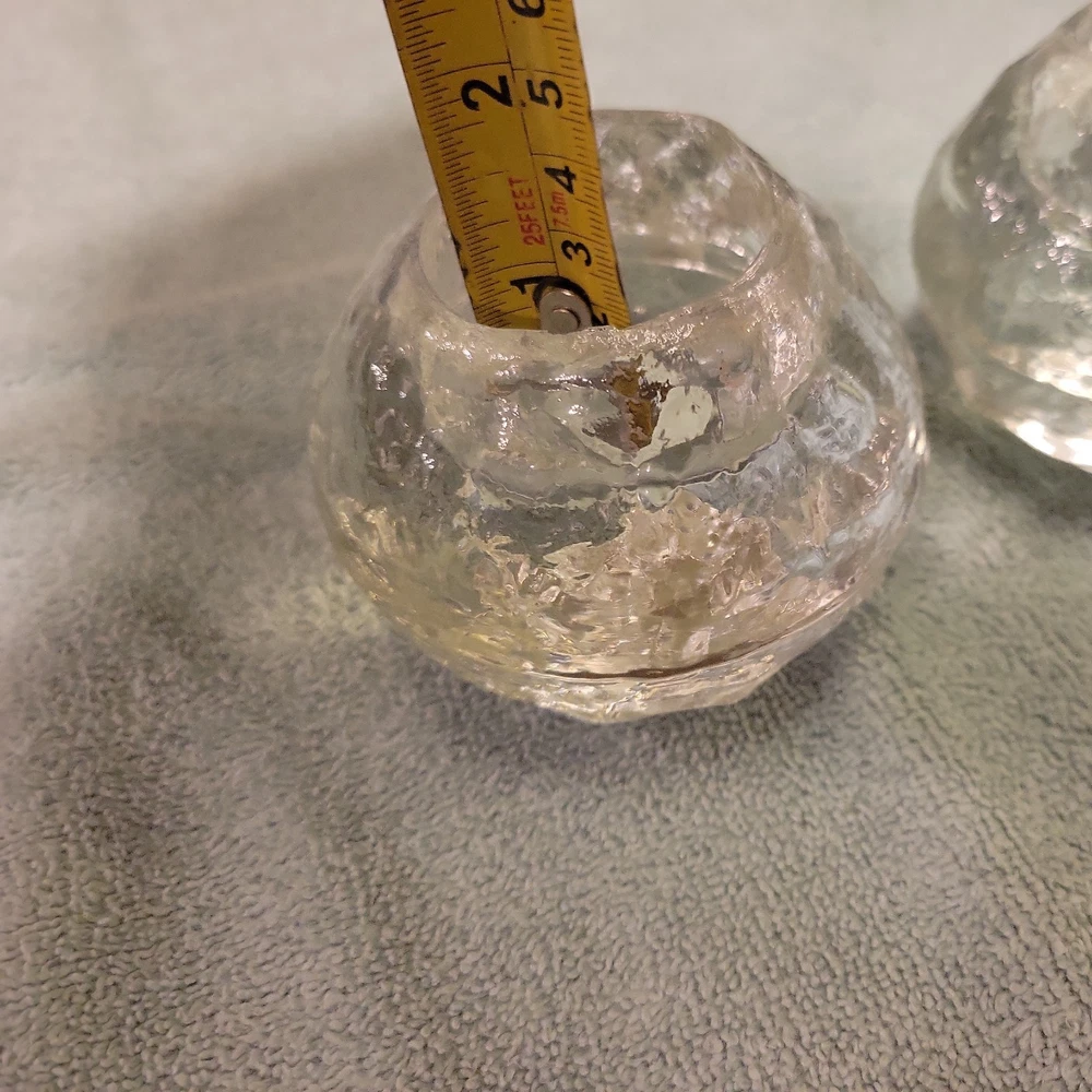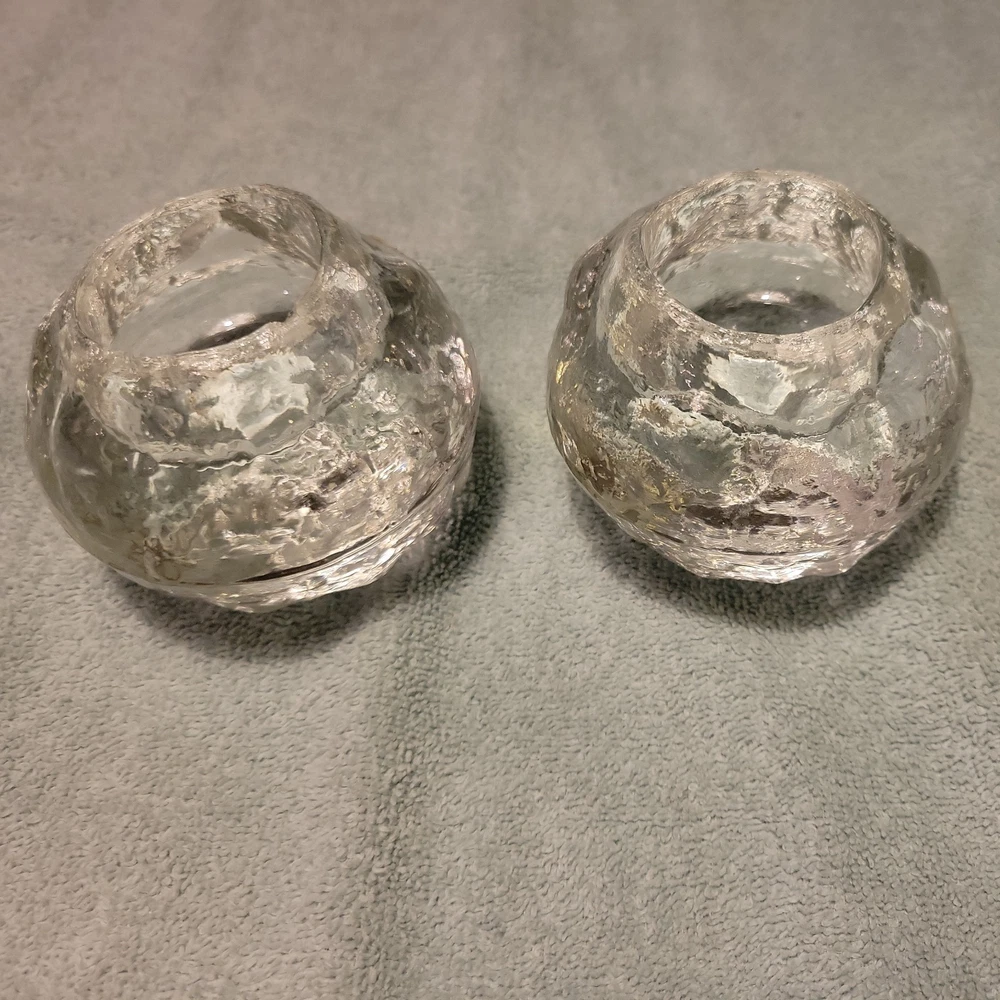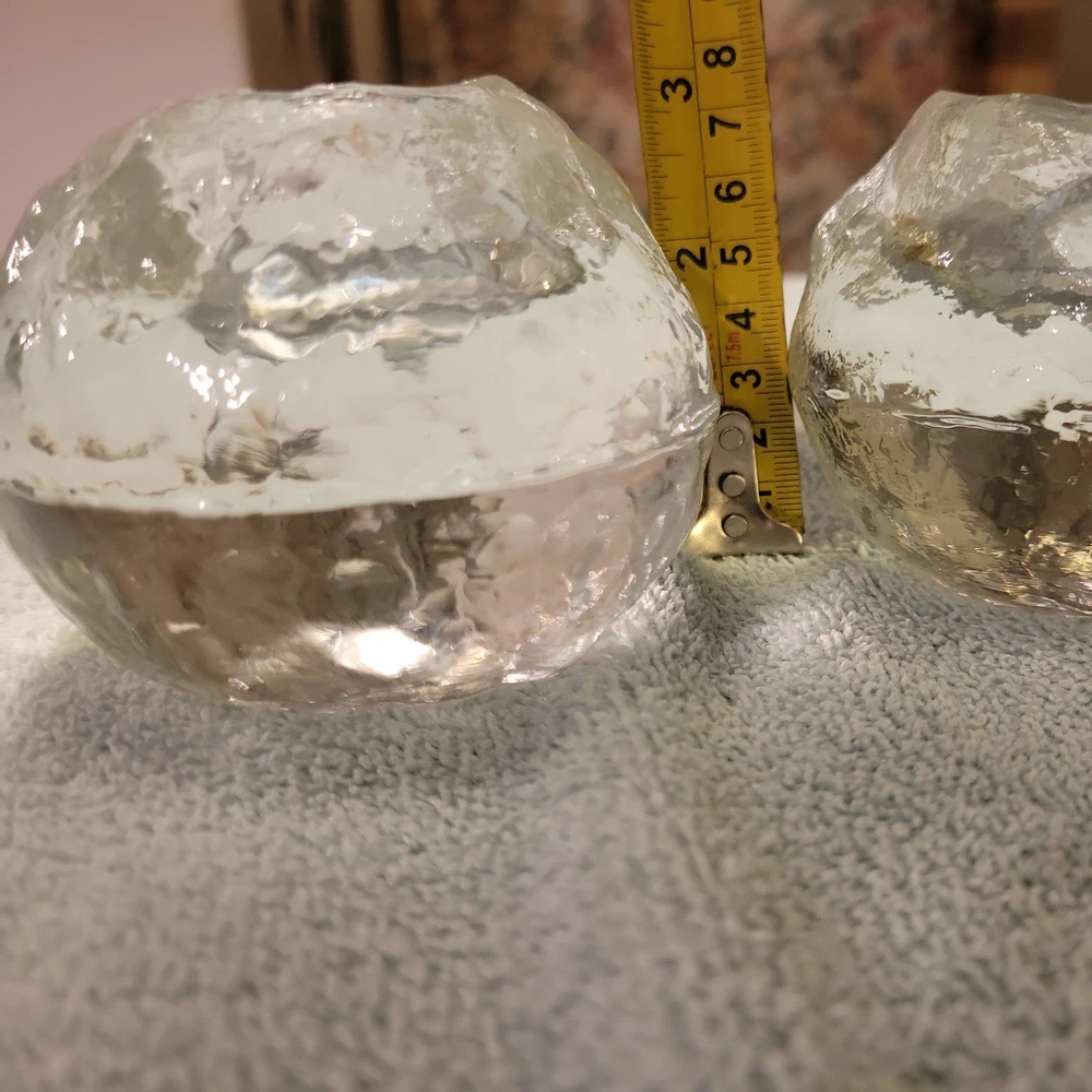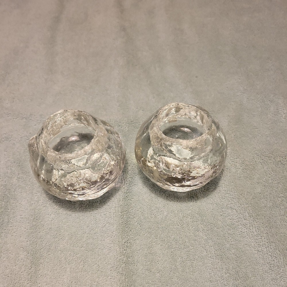 This product is a set of two vintage Pilgrim clear glass snowball ice votive candle holders, perfect for adding a festive touch to your Christmas décor. Made of art glass, these holders are suitable for holding votive candles and can also serve as paperweights. The clear color and snowball ice design give them an elegant and charming look that will enhance any space in your home during the holiday season.