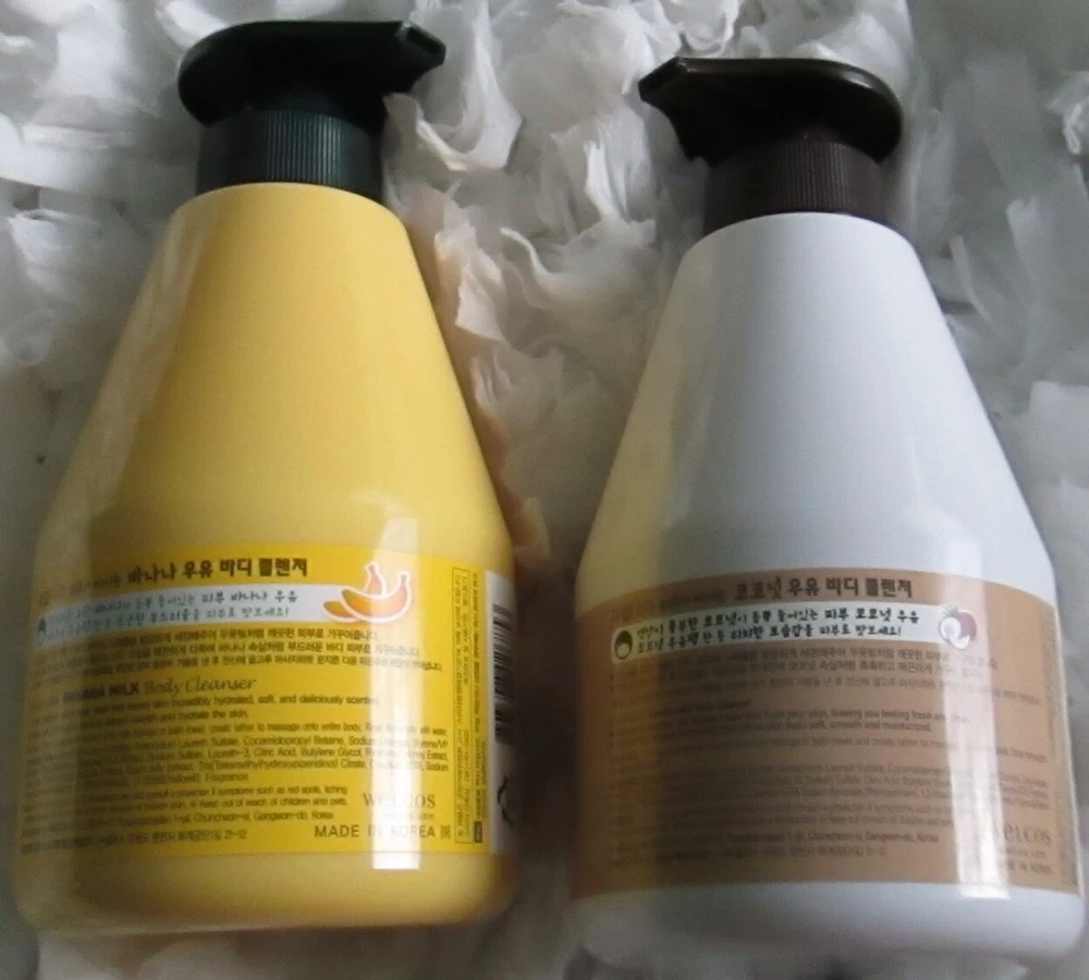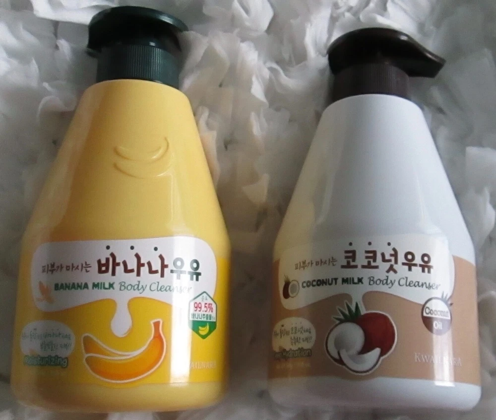 NEW 2 X WELCOS KWAILNARA *BANANA MILK BODY CLEANSER* & *COCONUT MILK BODY CLEANSER* EACH BOTTLE 19.75 FL OZ 560g COMPLETE WITH PUMPS FOR EASY DISPENSING MADE IN KOREA THEY SMELL DELICIOUS! *FREE SHIPPING IN THE USA ONLY* THANK YOU FOR VIEWING THIS LISTING PLEASE SEE OUR OTHER BODY ITEM LISTINGS AVAILABLE HAVE YOURSELF A GREAT DAY