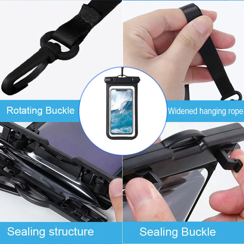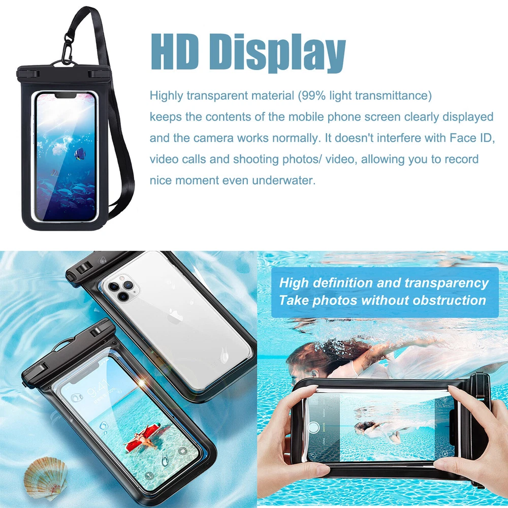 2 Pcs Waterproof Floating Cell Phone Pouch Dry Bag Case Cover For iPhone Samsung Features: 1. BEACH -SUPERIOR WATERPROOF PROTECTION: Certified IPX8 waterproof provides complete protection against water, snow, dust, and sand. Ensure your cell phone stays dry. 2. CASE FRIENDLY: With a size of 6.5 inches, the waterproof phone pouch can fit most cell phones with or without a case, providing double insurance to your phone. 3. RESPONSIVE TOUCH SCREEN: The waterproof phone pouch is made of upgraded PVC material that provides excellent response sensitivity while using your phone, including face ID unlock and calling. 4. CLEAR PICTURE UNDERWATER-CRUISE SHIP : With high transmittance transparency technology, this phone pouch provides a crystal clear photo capture of the underwater world. 5. ADJUSTABLE LANYARD: Comes with a detachable lanyard from 13.8 to 21 inches providing various choices for the length you prefer— by crossing your body or around your neck. 6. TRAVEL : Ideal partner for various activities, such as beach playing, water , swimming, snorkeling, kayaking, rafting, or even taking a shower with your phone in hand. Specification: Color: See as picture showed Material: PC+PVC Applicable to: mobile phones under 6.5 inches Waterproof grade: IP68 Suitable for: swimming, diving, camping, outdoor Compatible with: Most smart phones (under 6.8 inches) iPhone 11 Pro Max, iPhone 11, iPhone 11 Pro, XS Max, XR, XS, X, 8 Plus, 8, 7 Plus, 7, 6s, 6s Plus, 6, 6 Plus, 5s, 5, SE, 5C, 4s, Samsung Galaxy S9 Plus, S9, S8 Plus, S8, S7, S6, S6 Edge, S5, S4, S3, Note 8, 7 etc, Google Pixel 2, Moto G5, V30, G6, S8 Eged, Edge Plus, Oneplus 5T, Oneplus 3T, Oneplus 3, Oneplus2, BLU R1 HD Advance 5.0 Studio Selfie 2 Studio X8 HD LIFE ONE X X2 Energy X2 Vivo 5 mini 5R XL 2 Energy JR etc, Play Z Huawei Honor 5X 6X, Asus Zenfone Moto XT1644 ZTE Axon 7 mini P9 P8 G6 G5 G4 G3 G2 v10 etc, HTC One M10, M9, M8, M7, Nexus 6, 6P, 5, 4, Sony Xperia Z3, Z2, Z1, Nokia Microsoft Lumia BlackBerry etc. Package include: 2 x Waterproof Case Cover 2 x Strap Notice: Please Do A Saftey Test Before Using The Waterproof Case!! 1.Release the snap closure after passing the safety test. 2.Open the case gently. 3.Put your smartphone into it softly. 4.Close the sale smoothly, please make sure press the top of case inside the sale completely. On Nov 12, 2024 at 18:53:26 PST, seller added the following information: