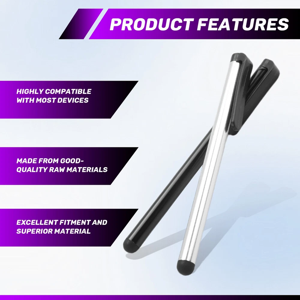 2 X Universal Stylus Pens for /Itouch//Touchscreen devices! 2x Pens, 14611 Compatible with All touch screen cell phone,for iPad,Tablet Soft rubber tipped end prevents from scratching your handheld screen. Generic stylus. Cellphone / iPod / iPhone / for iPad Stylus Pen (1 pcs Black + 1 pcs Silver) Package included: 1 x Stylus Pen - Silver;1 x Stylus Pen - Black Note:Light shooting and different displays may cause the color of the item in the picture a little different from the real thing. The measurement allowed error is +/- 1-3cm.