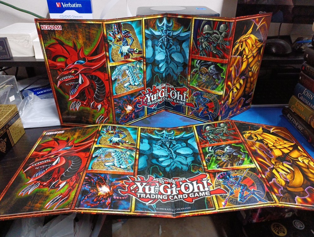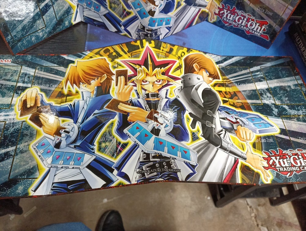 The product is a set of 2 Yu-Gi-Oh Trading Card Hardback Board Game Play Mats featuring artwork from the Yugi set released by Konami in 1996. These playmats are designed for the Yu-Gi-Oh! TCG and are part of the Shonen Jump franchise.