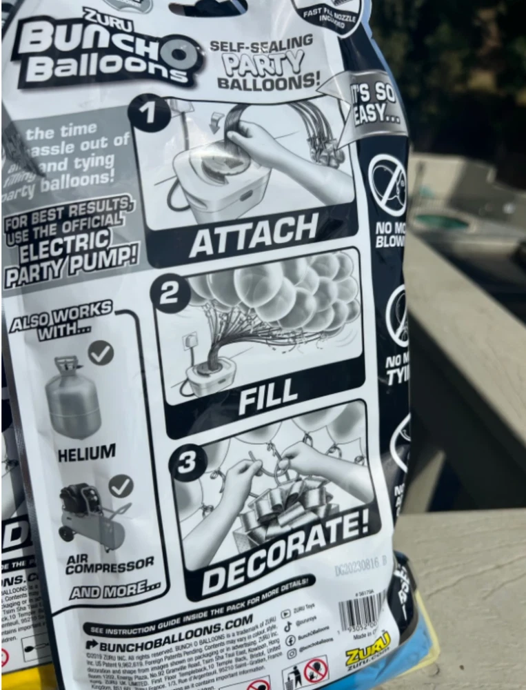 Add some fun to your next party with the ZURU Buncho 24 Balloons Party Electric Air Pump Self Sealing Refill Packs. This pack of balloons comes with a rechargeable air pump that can inflate up to 24 balloons at once, making it perfect for large parties. The multicolor design adds a festive touch to any occasion, and the self-sealing feature ensures that your balloons stay inflated throughout the party. Whether you're hosting a birthday party or a neighborhood block party, this ZurU product is sure to provide hours of entertainment. This is a 2 pack/48 balloons total!