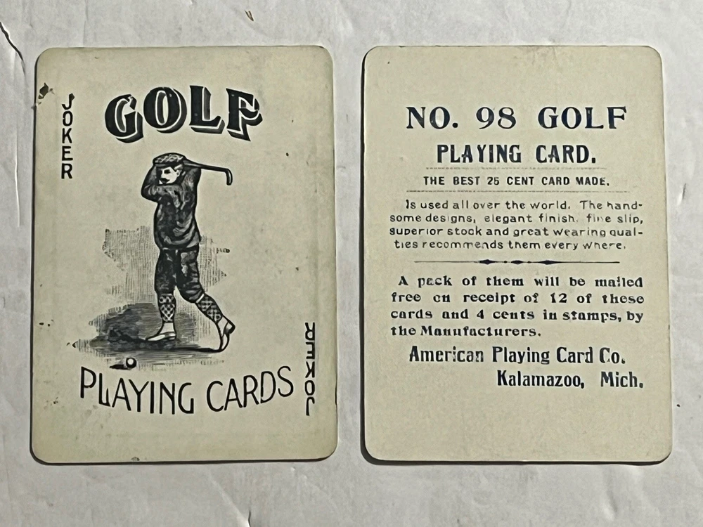 2 -c 1901-09 GOLF Playing Cards 1-Joker-1 Kalamazoo Mi. #98 Playing Card