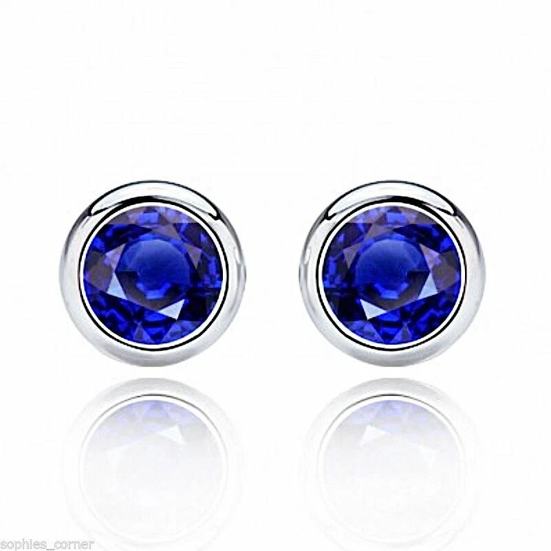 Stunning Bezel Set Sapphire Stud Earrings Bezel set in solid sterling silver. 2 ct. 6mm stone - 7mm with bezel. Gift box included. All Sterling Silver in this piece is Rhodium plated and will never turn color. Listing and template services provided by inkFrog Shipping We ship next day. All items purchased on Friday will ship Monday (unless a holiday). Items can take longer than (Ebay time frame is generous). You can upgrade to Priority Ship (2-3 day delivery). Returns We have a 30 day no questions asked return policy. No RMA needed. All items and parts must be returned including packaging (gift box). Please include your user name and item number. We reserve the right to include a restocking fee. No upgraded shipping will be refunded.