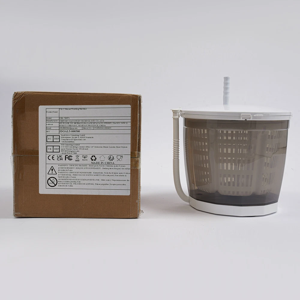2 in 1 Manual Mini Portable Washing Machine Compact Washer Clothes Spin Dryer Description Our mini manual washing machine uses premium material for long-term use. With suction cup feet for stability and an alignment-free lid for convenience, it is easy to use. It has the functions of dehydration and washing, very practical. Thanks to the compact size and lightweight, it is easy to carry, and ideal for both daily home use and travel. Key Features Premium Material: Made of high-class plastic, this product is of high strength, non-toxic, eco-friendly, wear-resistant, and not easy to damage for long-term use. Dual Use: This product is not only a manual washing machine, but also a spin dryer. One product with two functions, it is very cost-effective, saving space occupied by multiple machines. Eco-friendly: It doesn't need to be plugged in, you just need to rotate the handle to operate it, using only a fraction of water and detergent to clean clothes. Compared with electric washing machines, it saves electricity. Embrace a Healthier Life: It can be the second washing machine at home for washing close-fitting clothes separately to avoid cross-infection. Considerate Design: The carefully designed handle allows you to easily and effortlessly rotate, quickly completing cleaning tasks. Moreover, it can be folded by lifting it up, saving you more storage space. Highly Portable: The lightweight (5.56 lbs) and compact (13.8*12.6in) make it easy to carry, making it also suitable for travel and camping. Easy to Clean: With a smooth surface, simple structure, and detachable dehydration basket, it is easy to clean, saving effort and time and avoiding secondary pollution of clothing. Stylish Appearance: The elegant color paired with smooth lines, stylish yet classic, easily blending into various home styles, adding a touch of sophistication and taste to your home life. Details Alignment-free Lid: The lid can be closed at any angle by rotating clockwise to close the lid and counterclockwise to open it, which is convenient. Suction Cups: Four suction cups enhance stability during spinning, minimizing vibration. Application This product is suitable only for small items like underwear, socks, towels, diapers, baby clothes, and delicate such as woolens, silks, and knitted dresses. It is ideal when you only have a few items to wash and it can be used in RVs, camping, apartments, and dorms. You also use it to wash vegetables. How to Use Step 1: Place the machine on a flat countertop and open its lid. Step 2: Put in your laundry, and detergent, and add the appropriate amount of water. Step 3: Close the lid and open the handle. Step 4: Hold the handle and rotate it to start the cleaning job Step 5: When the washing is finished, put the drainpipe down and pull out the plug to drain. Step 6: Open the lid, lay the clothes flat, then close the lid and rotate the handle to drain the water. Specifications Style: Modern Shape: Round Color: Grey Material: Plastic Mounting Type: Freestanding, Tabletop Assembly Required: Yes Operation Mode: Manual Washing Capacity: 2kg/4.4lbs Dehydration Rate: 40-50% Product Size(D*H): 35*32cm/13.8*12.6in Package Size: 37.5*35*36cm/14.76*13.78*14.17in Gross Weight: 2.65kg/5.84 lbs Net Weight: 2.52kg/5.56 lbs Package Included 1* Mini Manual Washing Machine 1* English Manual Notes Please check the product size before ordering to make sure it fits your needs. This product holds up to 3.17gal of water. Please note that this product is not suitable for bulky or winter clothing (jeans, jackets, bedsheets, quilt covers). Please note that due to the high-speed dehydration, this product will have a slight shaking, which is a normal phenomenon. If the shaking is too big, please loosen the handle, and hold the product steady with both hands, when the basket inside stops rotating, put the clothes evenly, and then cover the lid for dehydration. Please note that when moving the product, please do not force upward to lift the product, so as not to damage the foot pad, the product will be moved flat out of the table. Please allow the slight color difference caused by the shooting light and 1-3cm error due to manual measurement, and make sure you do not mind before you order. Payment Delivery details Terms of sales About us Contact us Payment We accept ebay payment 。 Fees such as import duties, taxes are not included in the item price or shipping costs. These charges are the buyer's responsibility. Delivery details Shipping: 2-9 working days to: USA Terms of sales We maintain high standards of excellence and strive for hundred percent customer satisfaction. Feedback is very important to us. We hope that you contact us immediately before you give neutral or negative feedback, so that we can address your concerns. It is impossible to address issues if we do not know about them! About us Your satis faction is our ultimate goal. We work hard to earn your trust and future business. Our certified technicians have tested each item before shipping. The unit comes with 1 year limited warranty on all manufacturing defects. a) If you receive a defective item, you may return it or ask for a discount. Please contact us within 14 days after you receive the package. b) What you returned must be intact and in its original packaging as re? u. Customer is responsible for shipping costs of the returned item. c) We will cover the cost of shipping back t with the shipping rate indicated in the registration page. We will send you a new unit or refund the full payment you paid. Thank you. Contact us Business Hour Business Hour: Monday To Friday: 8:30 AM to 5:00 PM (Beijing China time) Due to time zones, our reply to your questions may not be immediately. But within above working time, we will reply your email within 24 hours. If it's non-workdays, please kindly be patient and wait till Monday. Please contact us with ebay message. Please feel free to contact us if you have any questions. Monday To Friday: 8:30 AM to 5:00 PM (Bei