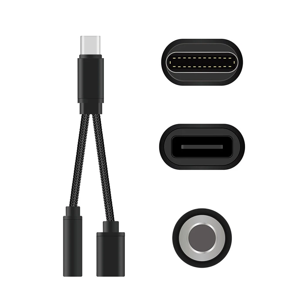 2 in 1 USB-C to 3.5mm Audio Adapter Type C Cable 3.5mm Audio Jack Headphone