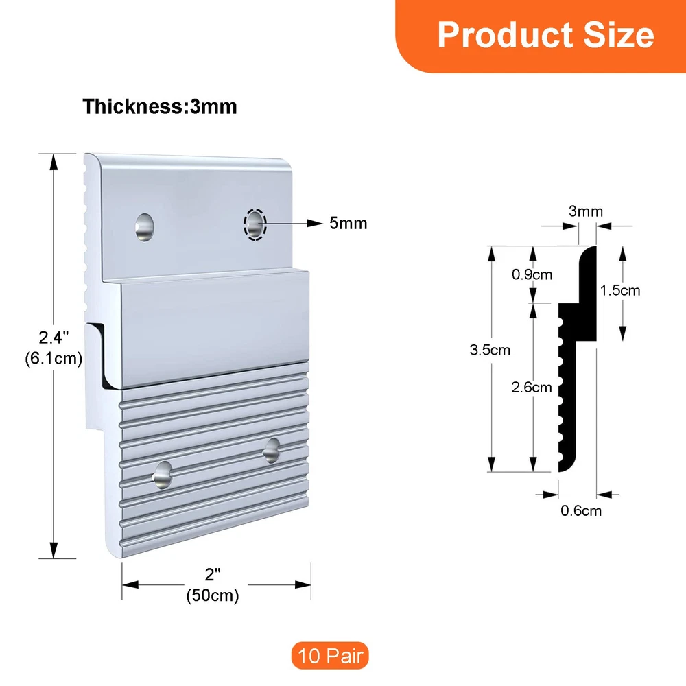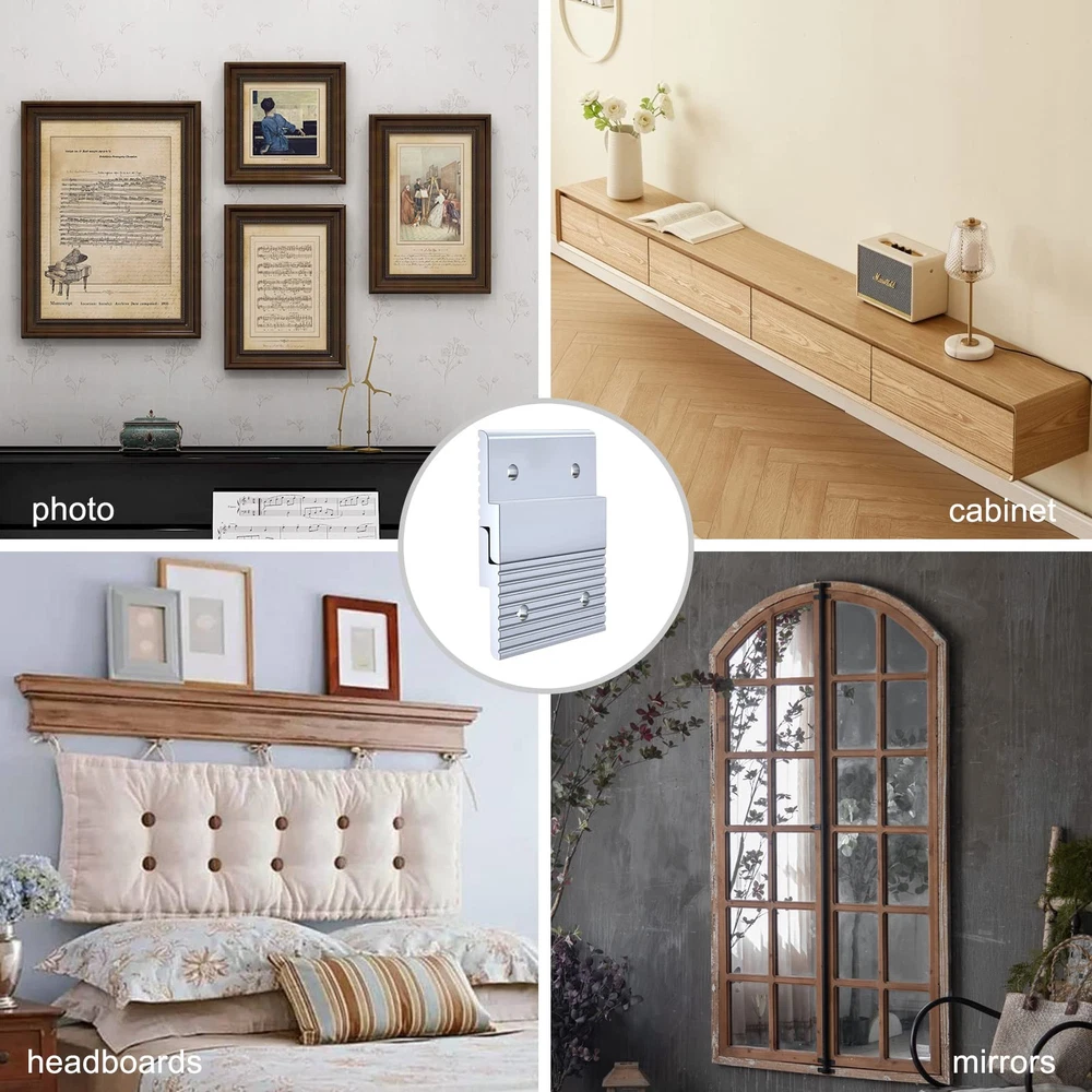 【Wall Hangers Heavy Duty】: Our french cleat hanger is made of 6mm thickness aluminum, sturdy and durable to support max 30 lbs. No worry for hanging safety 【Invisible Mirror Hanging Hardware】: These mirror hanging hardware can be completely invisible after settled, great for hanging photos, mirror and other arts. Give you a clean and beautiful decoration 【Easy to Install】: you can use your screws and 4 * M5 holes for installing. Another interlocking design help to remove your design easily, just need to lift the picture or mirror, then remove hangers directly 【Wide Application】: Z bracket is an ideal tool for hanging Hanging Panel, Whiteboard, Cabinet, Shelf, Headboard, Art, Frames,Pallet, Pictures, Mirrors, Photo and more. You can change your design easily, create a new look wall art at home from time to time 【Packing List】: We provide 10 pairs 2 inch headboard mounting brackets, with NO Screws. NOTE: You will need to purchase your own screws to install.