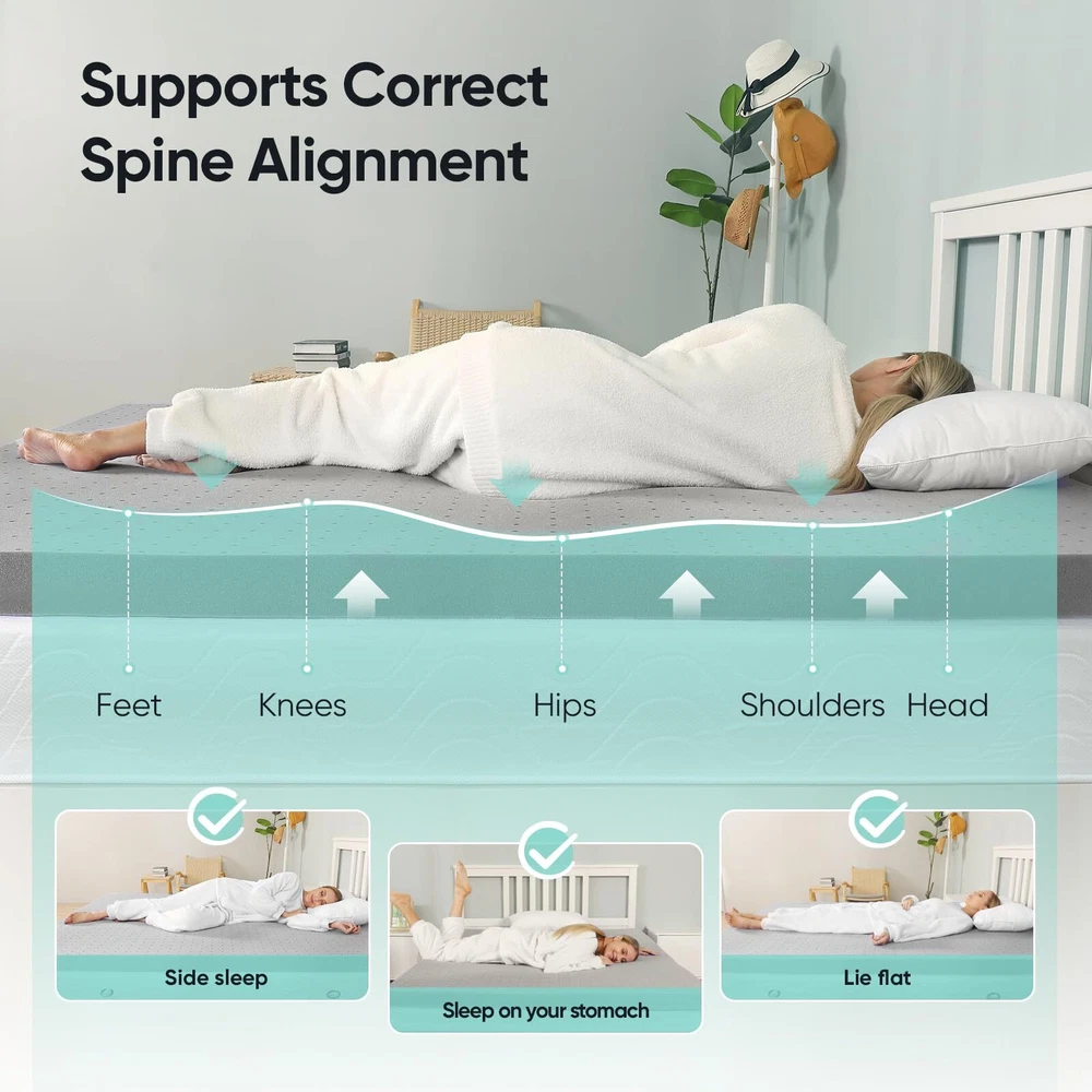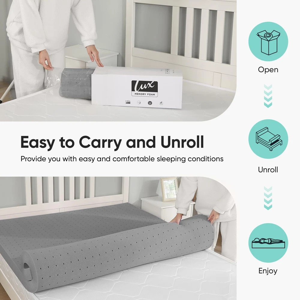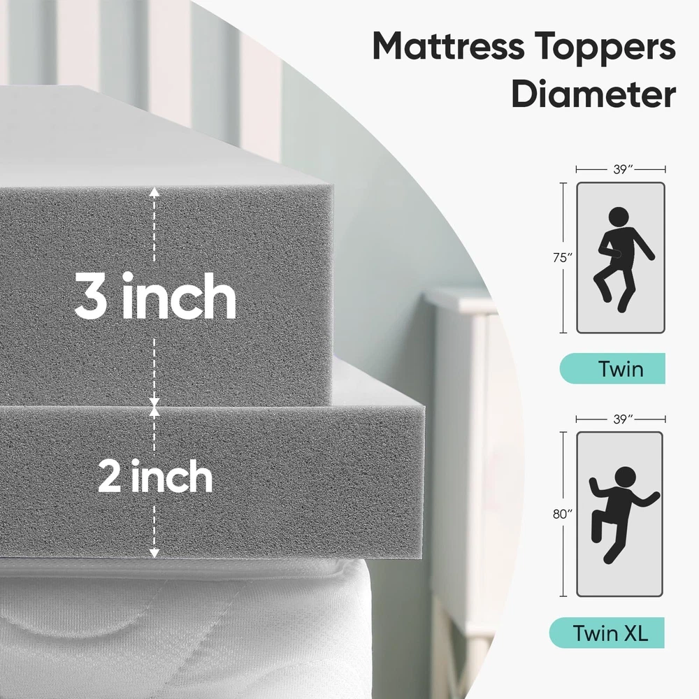 【Pressure Relief and Enhanced Support】Our gel mattress topper memory foam is designed to naturally conform to your body's curves and contours. It evenly distributes stress points, avoiding undue compression on the spine and joints, thereby promoting healthier sleep. The sensation of sleeping on this memory foam mattress is akin to floating on clouds, with unrestricted blood flow throughout your body, delivering an unparalleled sleep experience. 【Comfortable Sleeping Experience】The moderately soft and flexible 100% polyurethane material is suitable for all body types, evenly distributing weight and reducing spinal pain and pressure points. Whether you sleep on your back or side, the foam mattress pad fits your body's curve, providing the ultimate comfort. 【Endorsed with CertiPUR-US Certification】The bed topper twin is not only CertiPUR-US certified, but it has also passed stringent testing to meet the highest standards for safety, materials, performance, and longevity. With its user-friendly design, it's particularly considerate to pregnant women and children, making it an ideal choice for every household. 【Extraordinary Mattress Toppers】Whether you're lounging on the sofa bed, camping in the great outdoors, or hitting the road in your RV, this topper is the perfect addition to your sleeping arrangements. Enjoy a layer of luxurious memory foam that adds comfort and breathability to your mattress. 【Refreshing Sleep Solution】 Enhance your sleep with this premium mattress topper. Made with memory foam infused with bamboo charcoal, it neutralizes odors and wicks away moisture. The perforated surface boosts airflow, preventing heat buildup and ensuring a cooler night's sleep. This topper conforms to your body, relieving pressure points and promoting better spinal alignment. Wake up refreshed and revitalized every morning. 【3-Year Protection and 30-Day Money-Back Policy】 We provide a 3-year protection plan for all of our customers, if you experience any issues with our premium mattress topper within the initial 30 nights, please reach out to us for a comprehensive refund. We're committed to your satisfaction and are always available to provide top-notch customer.
