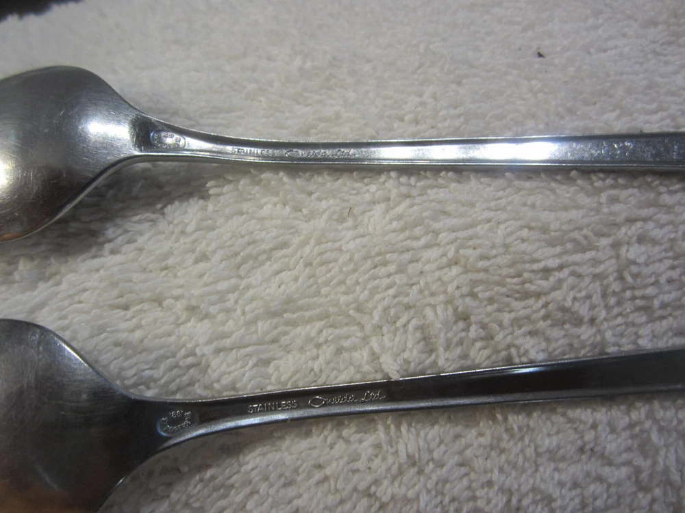 Material:Stainless SteelBrand:ONEIDAStyle:Mid-Century Moderngtin13:does not applyCharacter:naDepartment:AdultOriginal/Licensed Reproduction:OriginalType:SpoonHandle Material:Stainless SteelSeller Notes:“Both in used but very good shape. See pics for condition.”Color:SilverCulture:AmericanCountry/Region of Manufacture:UnknownUPC:does not applySet Includes:SpoonTime Period Manufactured:1970-1979MPN:na