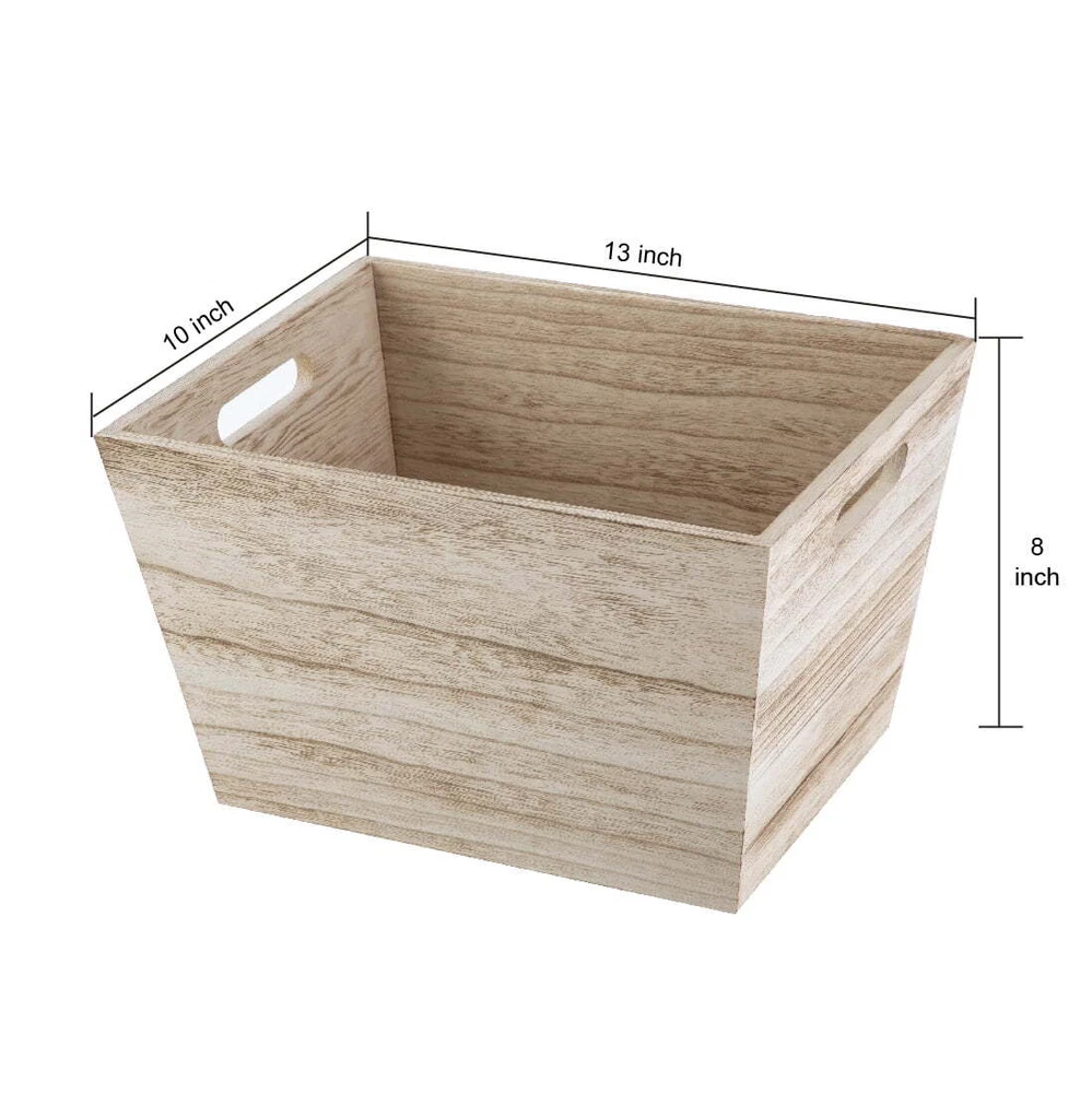 The Better Homes & Gardens Medium Natural Wood Bin with Burnt Design is a fantastic choice for those who love rustic, farmhouse, contemporary, coastal, and bohemian design. This gorgeous wood bin features two cutout handles and a tapered shape, which helps save space when stacked with other baskets. Enjoy the endless ways to utilize this wood bin. The bin can also be stained or painted to your desired color. On Feb 14, 2025 at 23:56:03 PST, seller added the following information: